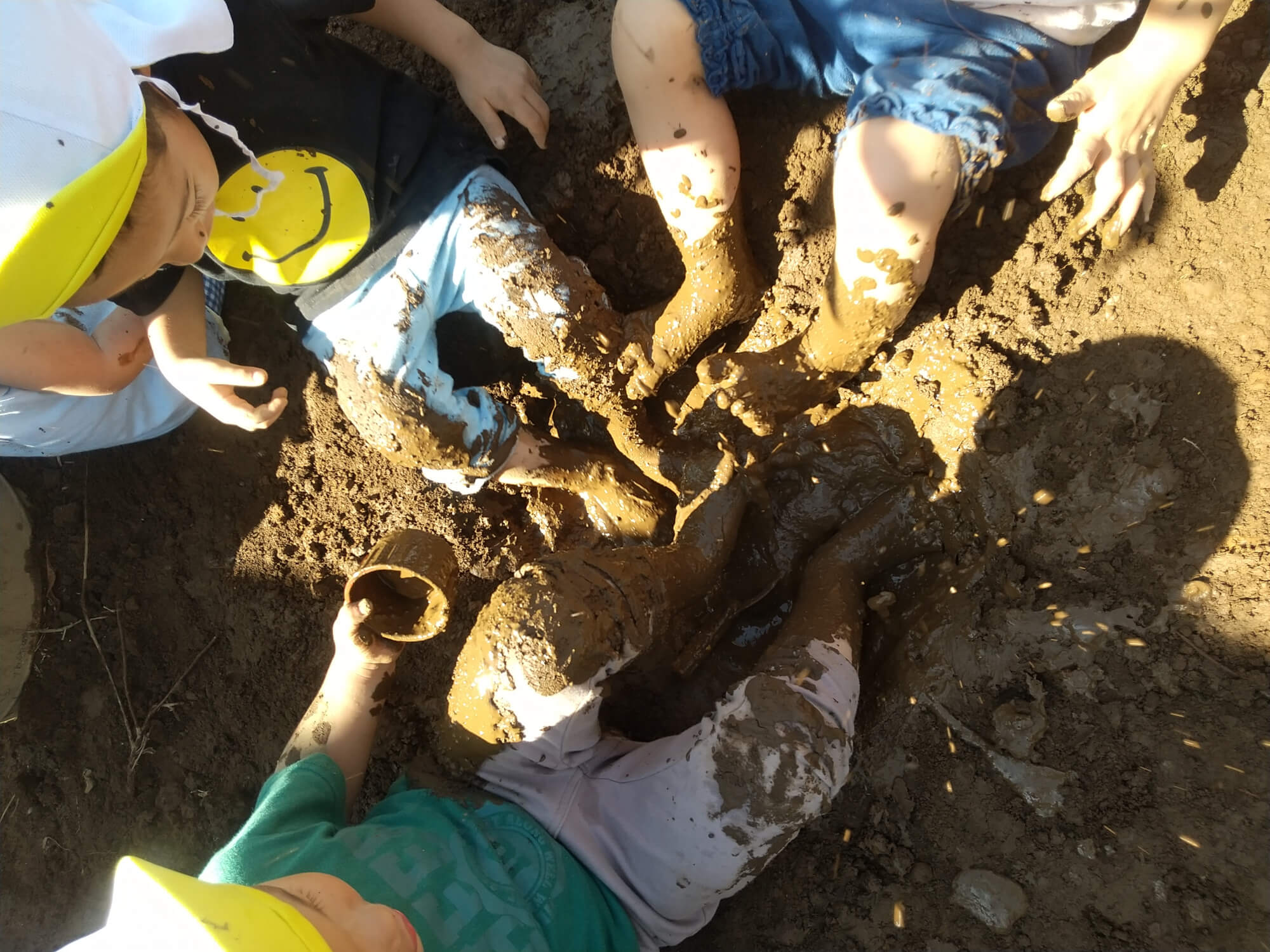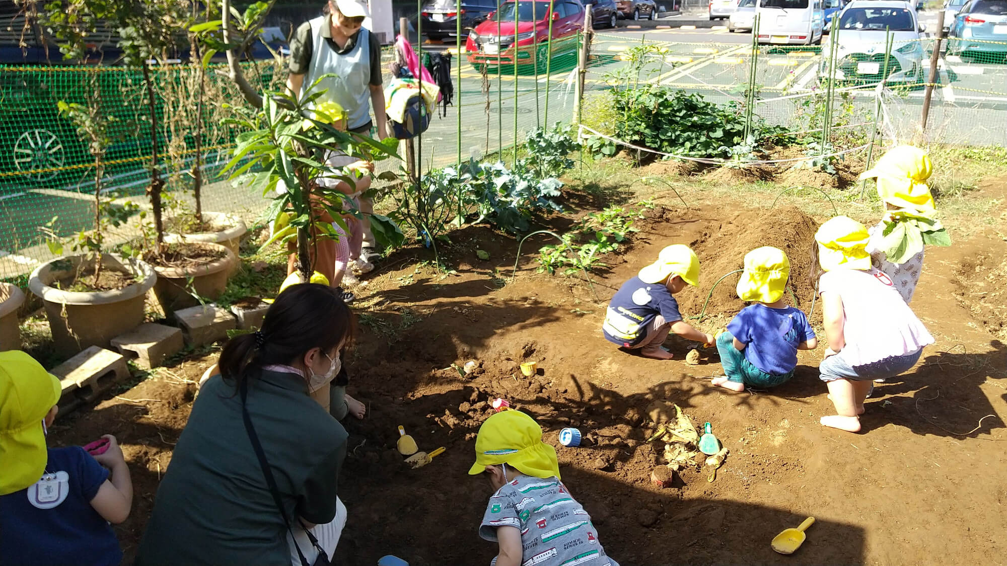 このように、園庭がなくても畑仕事やどろんこ遊び、木登りはできます。今ある環境を最大限に生かし、これからも子どもたちと一つでも多くの原体験を行っていきます。