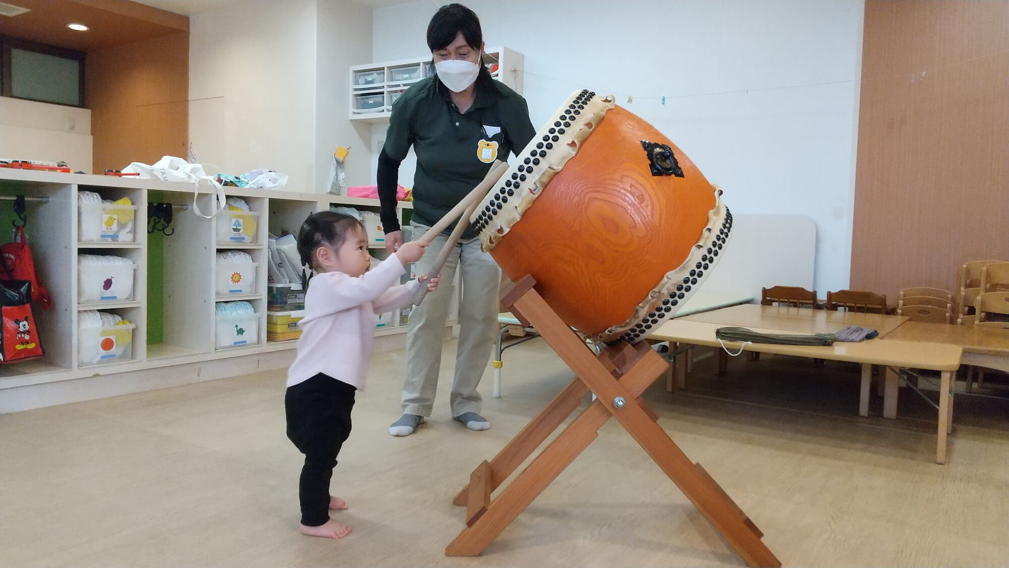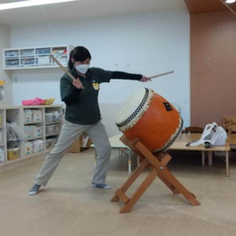 メリー★ポピンズ 成増ルームには「和光太鼓」に所属して活躍している職員がおり、毎年子どもたちに伝統の和太鼓を聞かせてくれています。