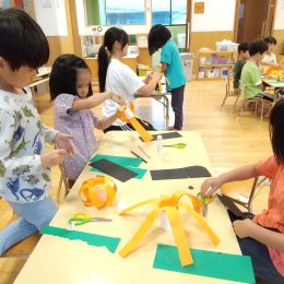 以前は鬼が来てみんなで豆まきをしてやっつける…という行事をしていましたが、乳児クラスは鬼の印象を強くうけてしまうので、最近の節分行事は鬼に模した人形をやっつけるというかたちになりました。