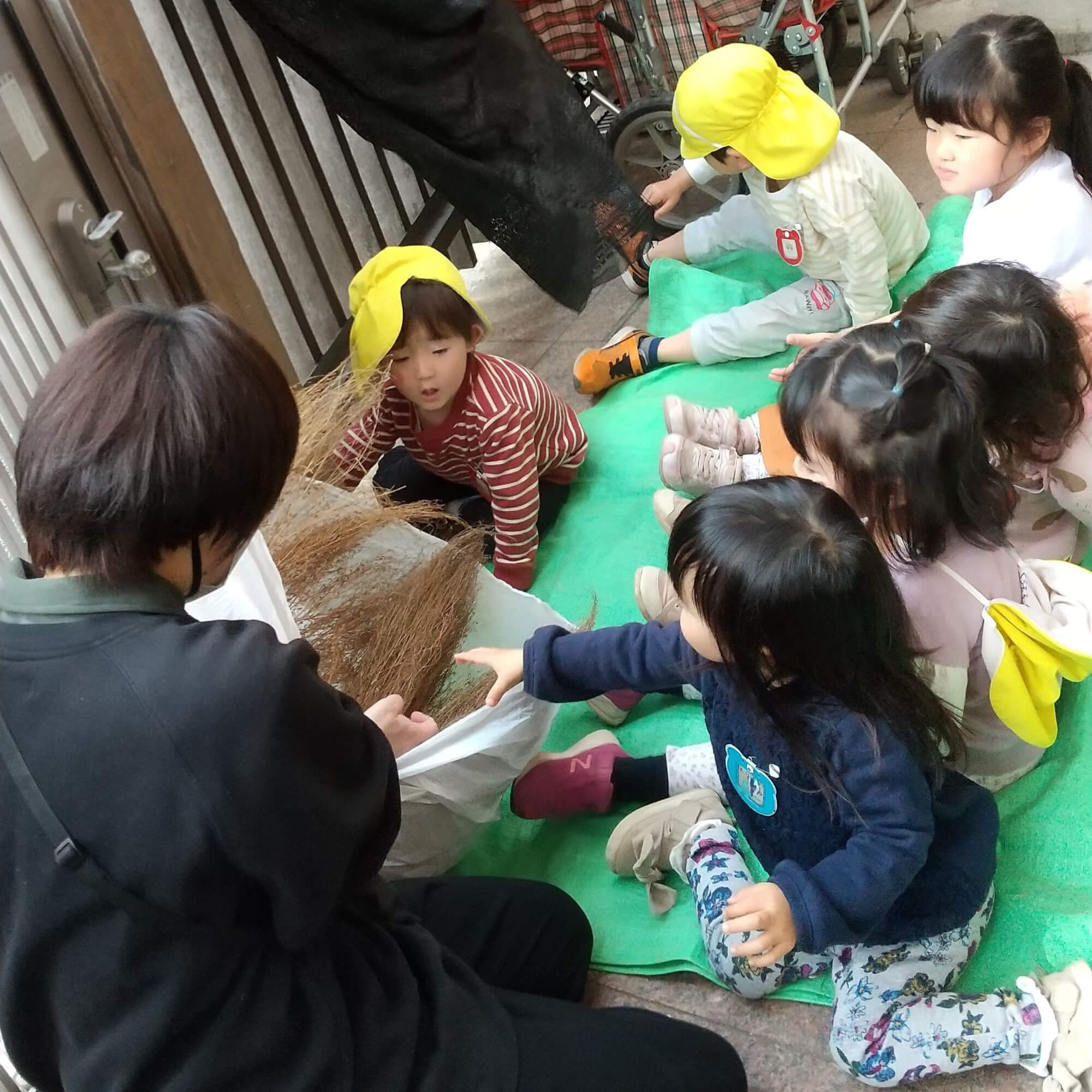 プランターのコキアはなかなか育たず、ほうき作りも諦めていましたが、スタッフが同時期に家で育てていたコキアが立派に育ち、子どもたちにもその綺麗な色を見せたい思いで園にプランターごと持ってきてくれました。とても綺麗な色でしたね。
