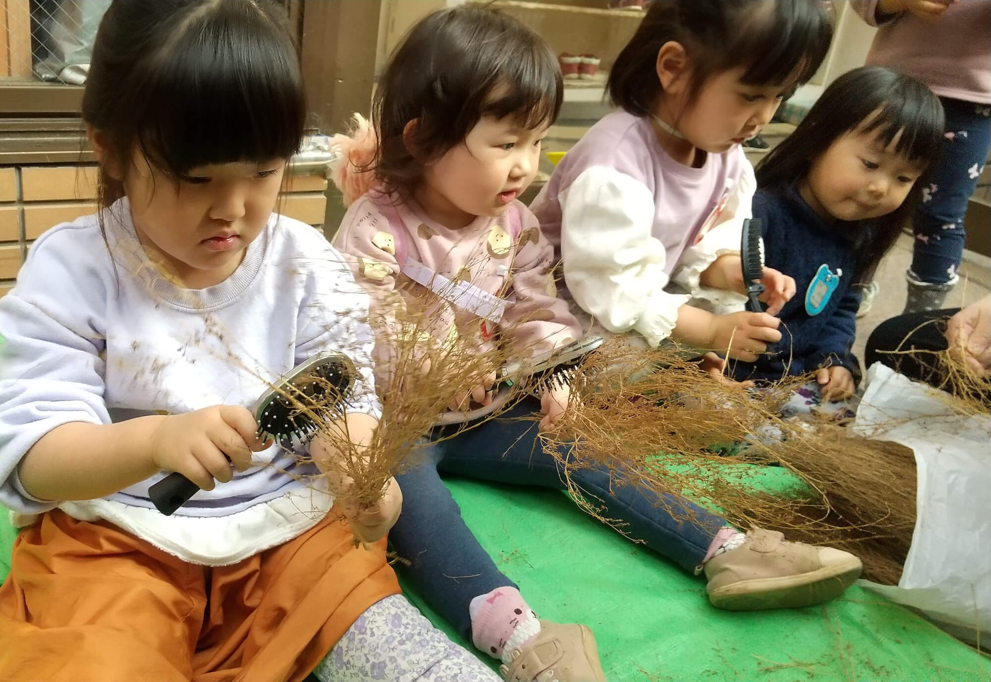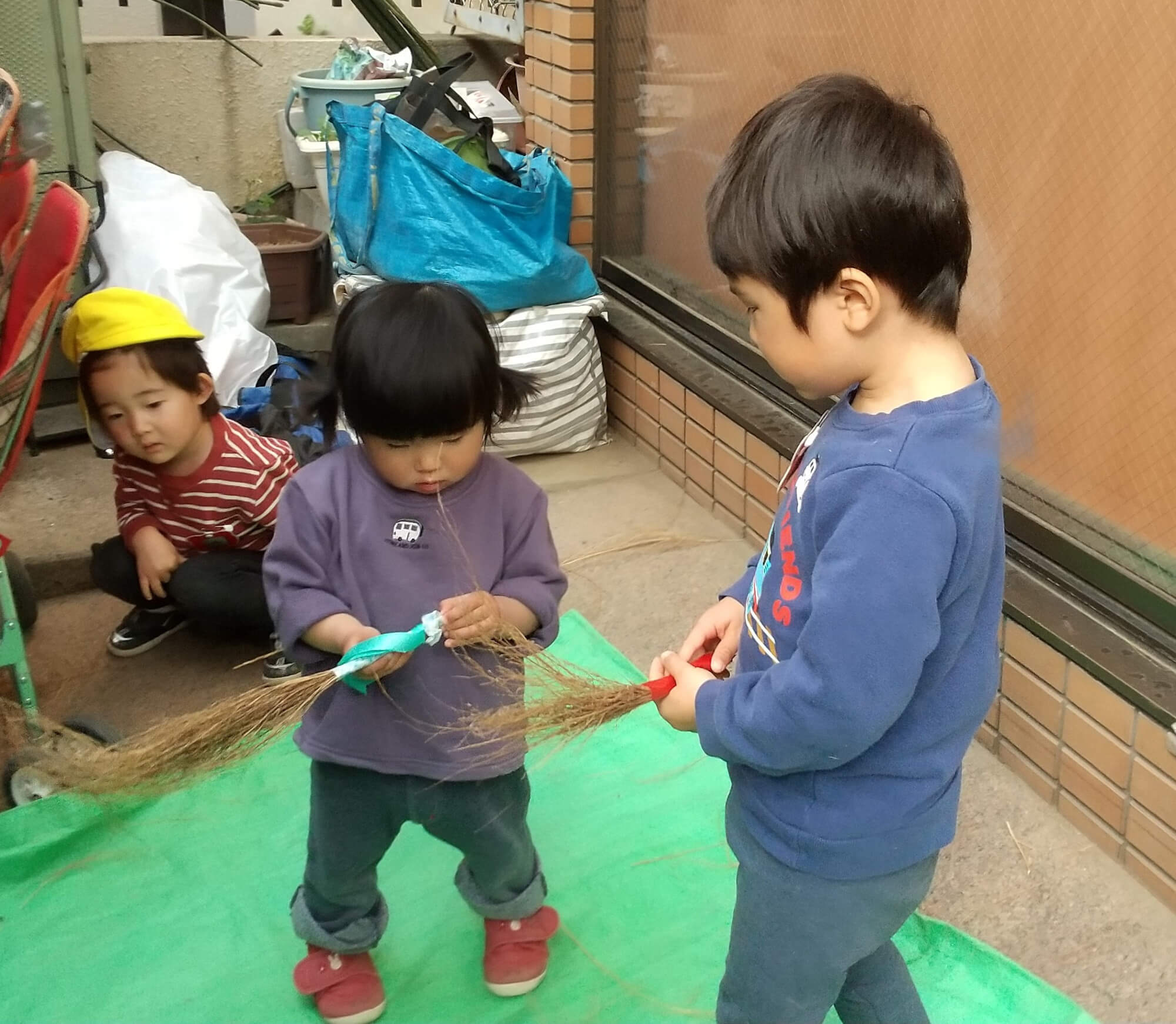 今年プランターでコキアを育てていたメリー★ポピンズ 成増ルームでは、そのコキアを使ってほうきを作るねらいがありました。