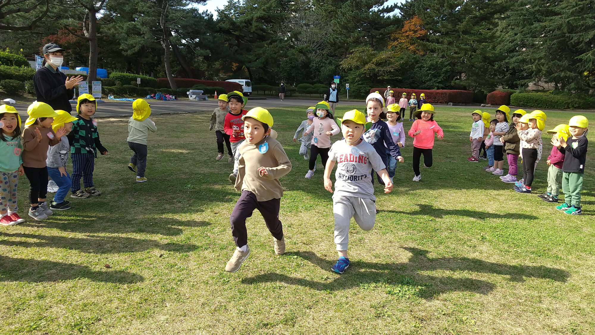メリー★ポピンズ エスパル仙台ルームでは、11月4日にスポーツ大会が開催されました。2歳児~5歳児が2つの公園に分かれ、マラソン大会としっぽ取り大会を行いました。参加した子どもたち全員が一生懸命、全力で取り組み、とても盛り上がりました。