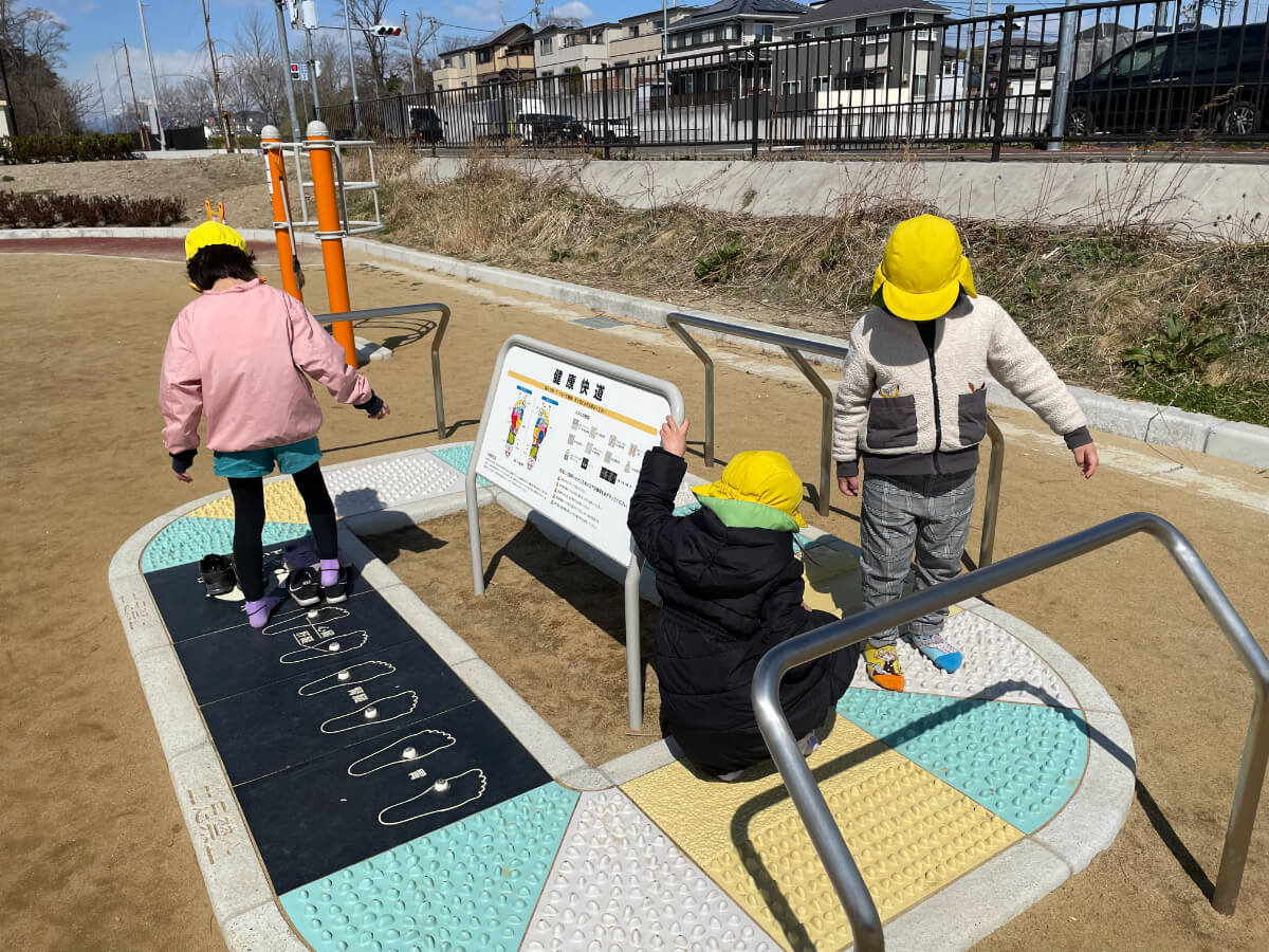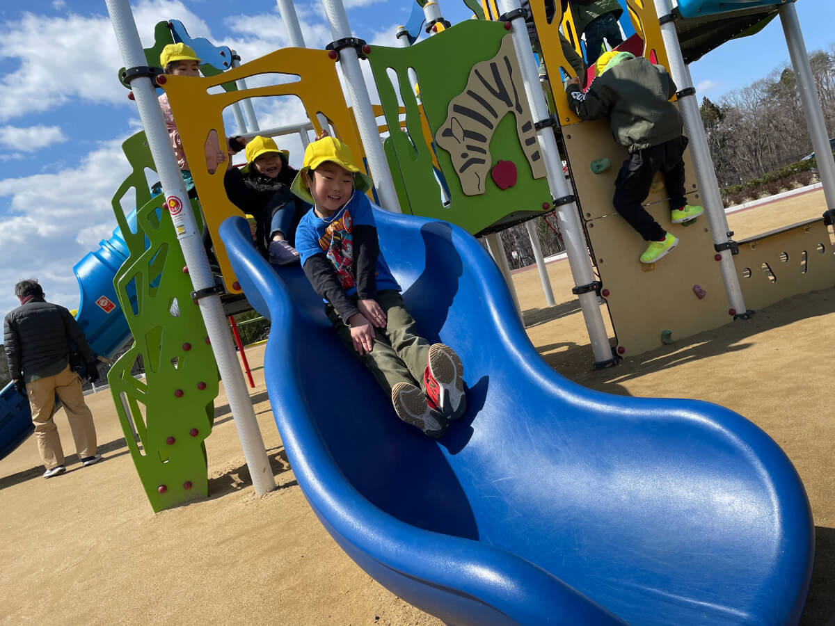 公園に到着すると、滑り台や健康遊具があり、めいっぱい身体を動かして楽しむ姿が見られました。