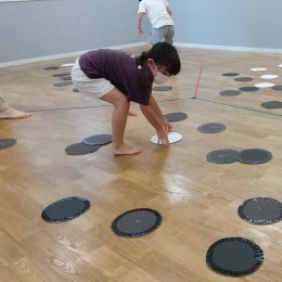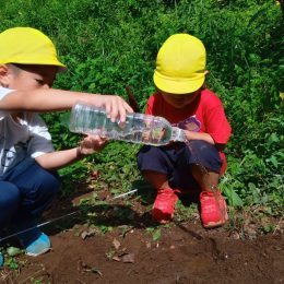 また、遊具と遊具の間にある遊歩道では、普段見ることのない植物や川のせせらぎを見ることができました。子どもたちは花を摘んだり、川のせせらぎから冷気を感じたりしながらゴールを目指しました。