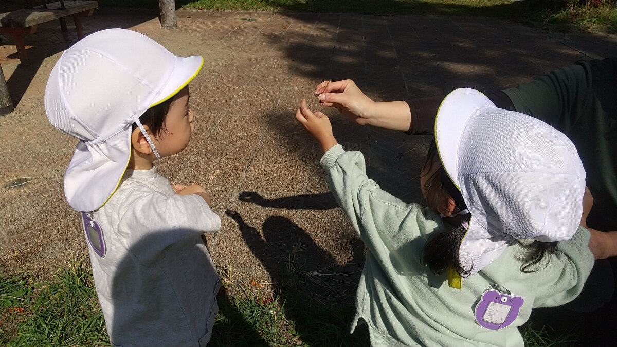 秋といえば、食欲の秋やスポーツの秋などがありますが、メリー★ポピンズ エスパル仙台ルームの子どもたちにとって、秋といえば「自然の秋」です。公園へ散歩に行くと、どんぐりや松ぼっくり、落ち葉がたくさん落ちていて、空を見上げるととんぼや蝶も飛んでいます。