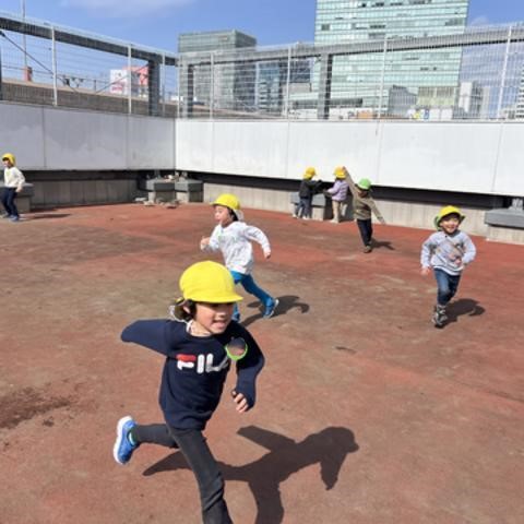 雨雪が多く降り散歩に行けない日が続き、久しぶりに晴れた日は園庭で思う存分、友だちと走ったり、鬼ごっこをしたり、泥を使いおままごとをしながら楽しんでいる姿がありました。