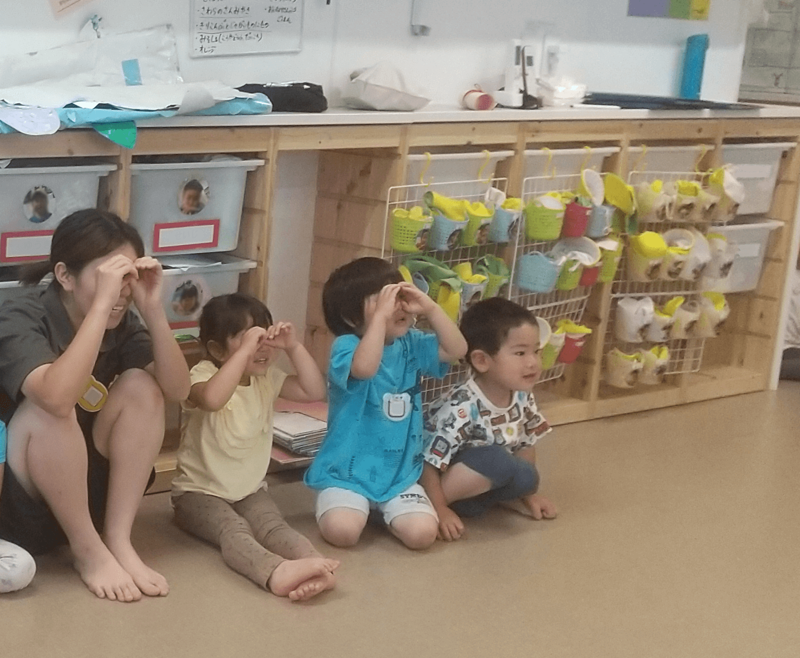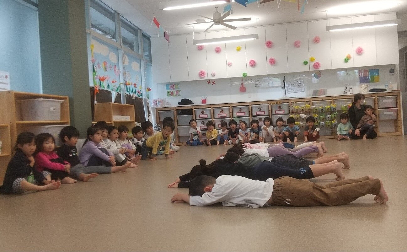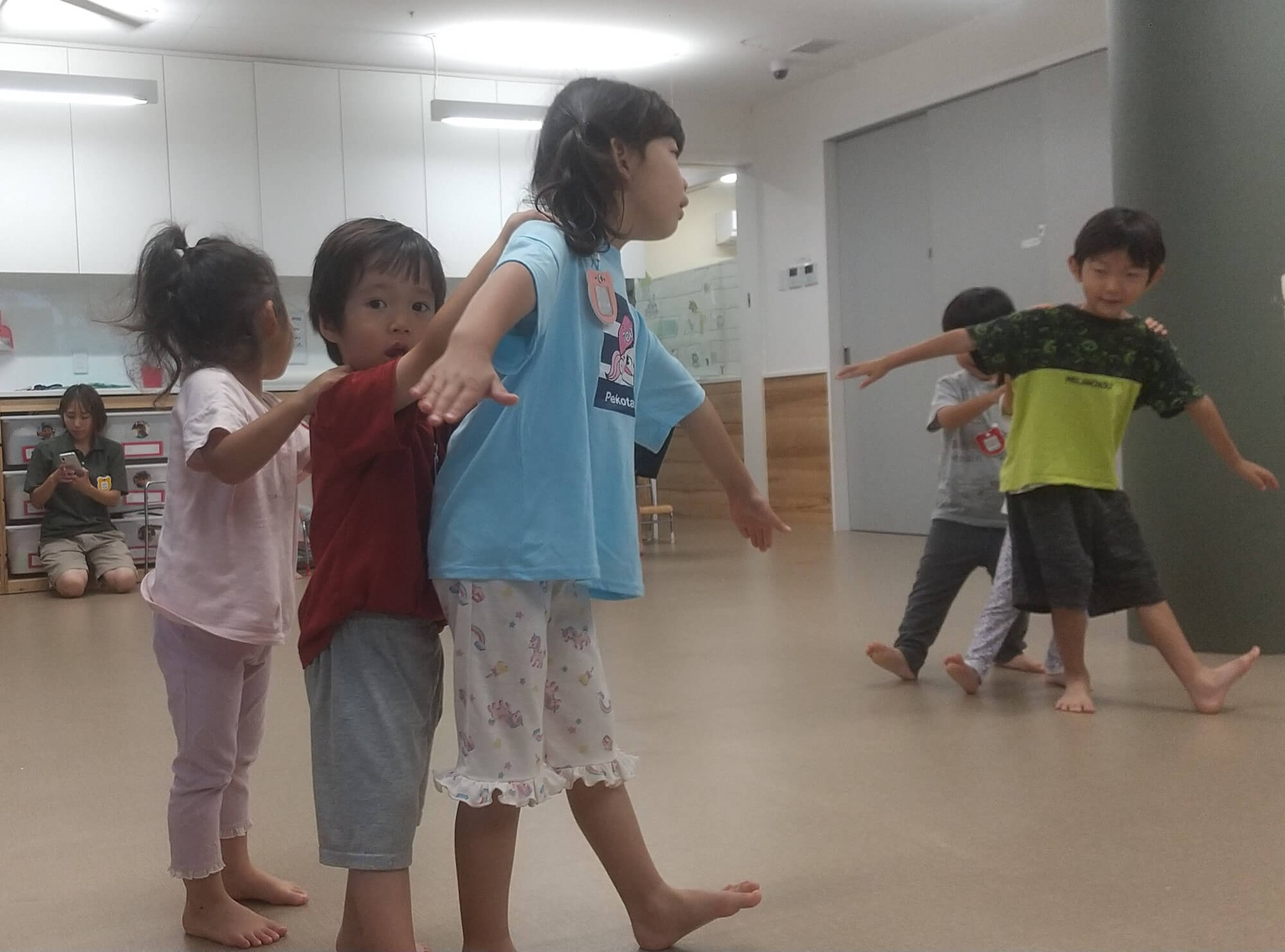 子どもたちは新しいリズム体操を通して「異年齢での関わり」「憧れを受ける自信」「憧れの5歳児と同じことが出来た自信」と、様々な子どもたちの成長をみることが出来ました。これからも子どもたちの成長を見守りながら、自信につなげることが出来るような関わりを意識していきます。