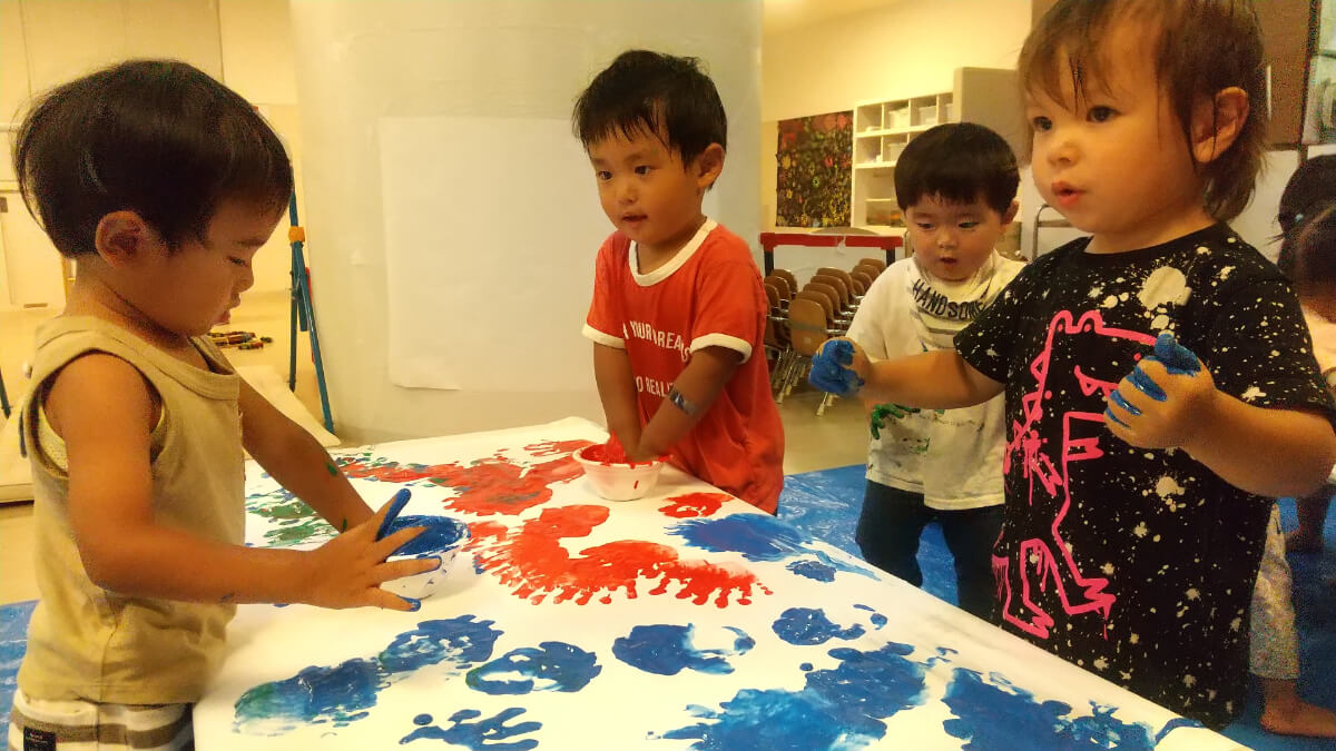 8月は、ボディペインティングなど絵の具を使う遊びを楽しみました。