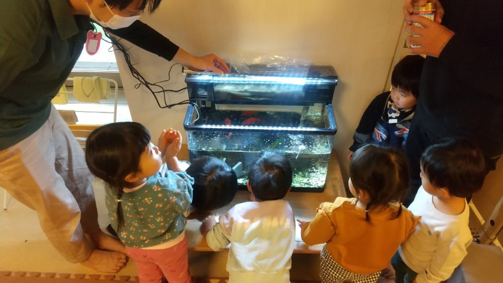 早速みんなでドジョウの生態について学び、ドジョウのご飯やお家について話し合いました。毎日2回エサをあげることを皆で決め、狭いところが落ち着くのでトンネルも設置しました。