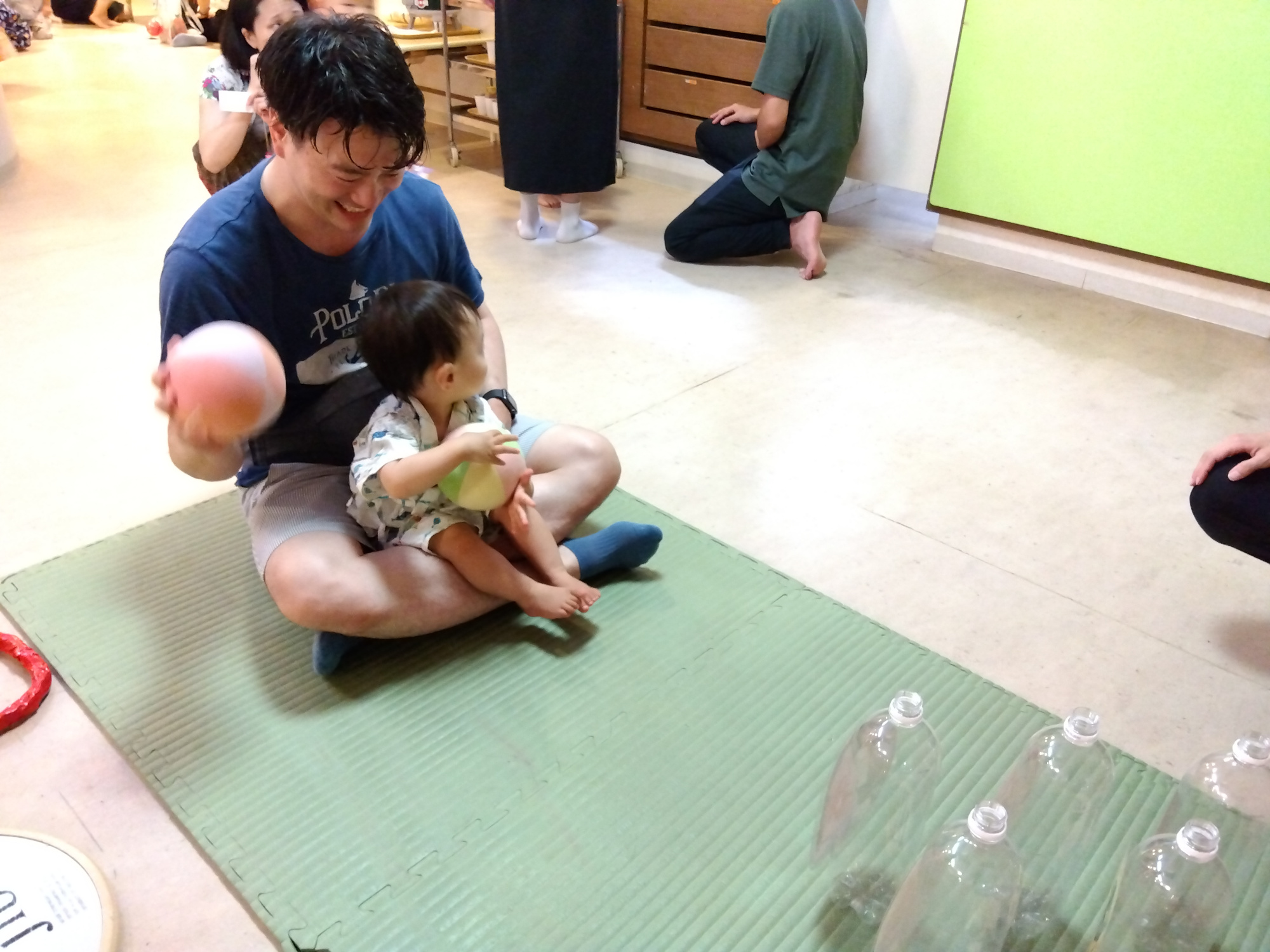 今年は、ヨーヨー釣り、的当て、ボーリング、お面作りといった出し物に、焼きそばやきゅうりの漬物、ケーキやレモンジュースを用意しました。どれも、乳児から幼児までが楽しむことができるように、と保育者間でアイデアを出し合いながら考えました。