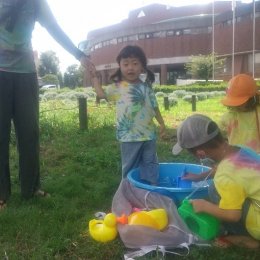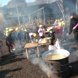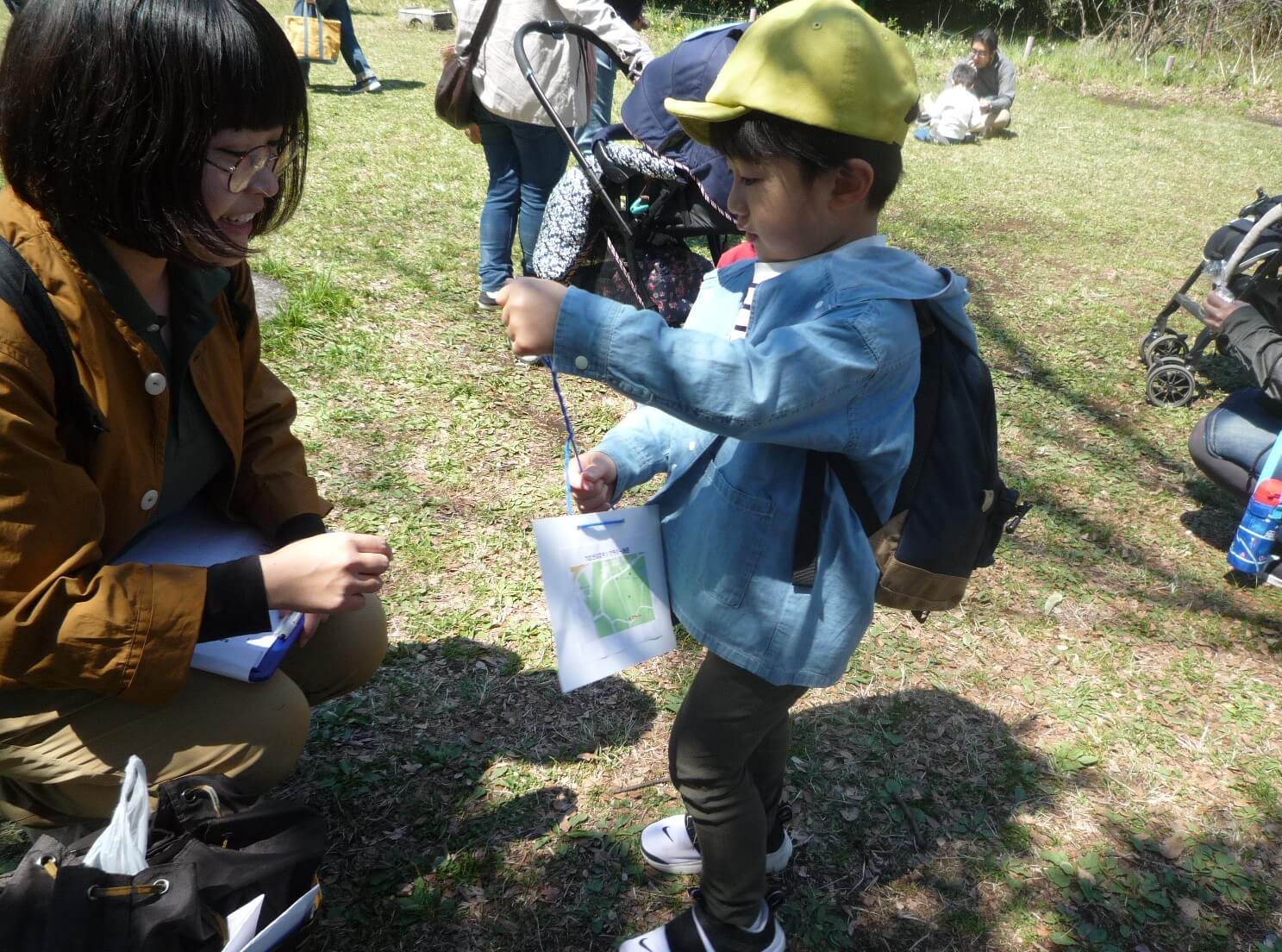 明治神宮の森ではスタンプラリーを行いました。子どもたちはスタートの合図と共に、はじけたように広い原っぱを走っていました。大きな桜の木がちょうど見頃の時期を迎え、とても穏やかな陽気であったこともあり、子どもたちを開放的な気分にさせてくれたのかもしれません。広場の端で集まっている子達に声をかけると、目線の先には少しだけ芽を出した竹の子がありました。普通に歩いているだけでは見逃してしまいそうな木陰に小さな芽を見つけた感動を分かち合う姿に、自然体験の魅力を再確認することができました。