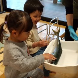 念願のいもほりです。キッズグループのメンバーで掘ってきました。さつまいもを傷つけないように、優しくそっと掘り出します。「うゎ~、いもむし~」「おいもが大きくて、でてこないー」「てつだって~」といろんな声が飛びかいます。出てきたさつまいもは、いろんな形をしていて子ども達は大喜びでした。