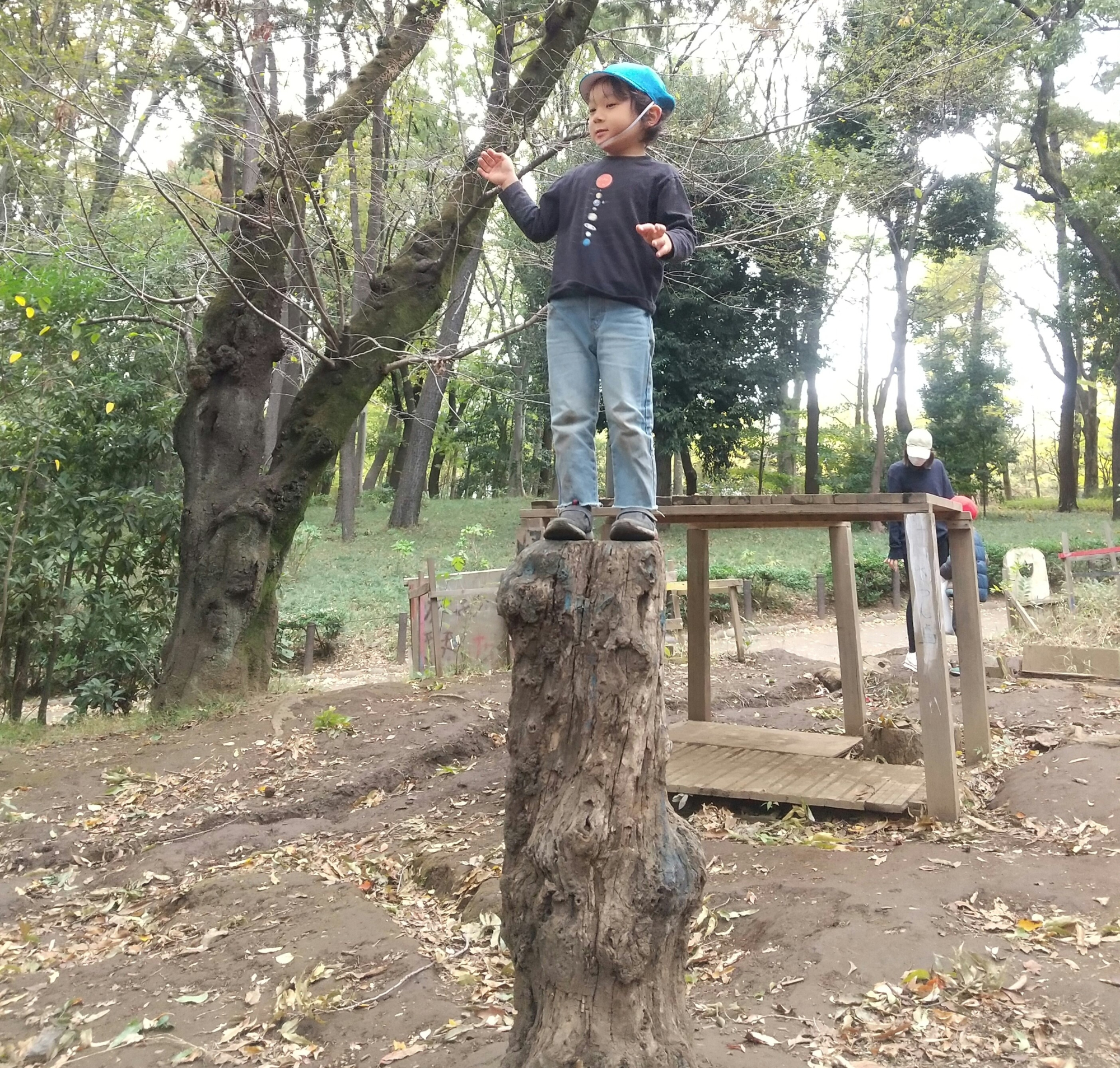 また、高い所や滑る所、木を自分で切ってみる所など自分の行きたいところへ主体的に向かい、自分で危機管理しながら考えて登ったり走ったりとして楽しんでいました。