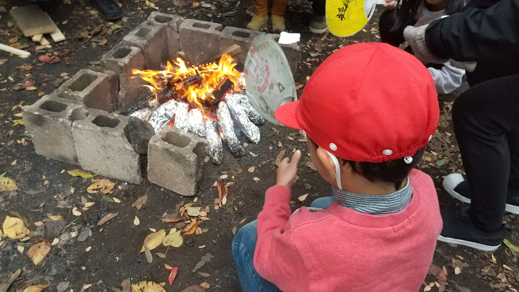 プレーパークでは遊ばずに、さつまいもが焼ける様子を観察し、焚き火の前から離れない子もいました。これも子どもの主体的な選択の一つです。