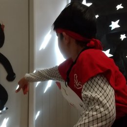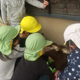 魚が出てくると子どもたちは興味津々です。魚の口を触って開けてみて「こんなに大きく開く」と驚いたり、目をよく観察して「キラキラしている」と気付いたり、発見がたくさんありました。