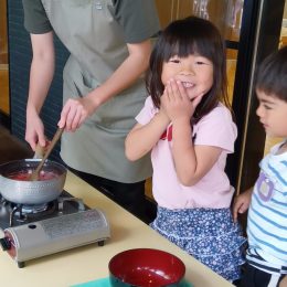 子どもたちが調理したつみれと、畑で採れた野菜を一緒に煮込んでつみれ汁の完成です。自分たちで作ったつみれの美味しさは格別で、おかわりをしている子どももたくさんいました。魚が苦手で普段は食べない子どもも、自分が作ったつみれはペロリと完食していました。