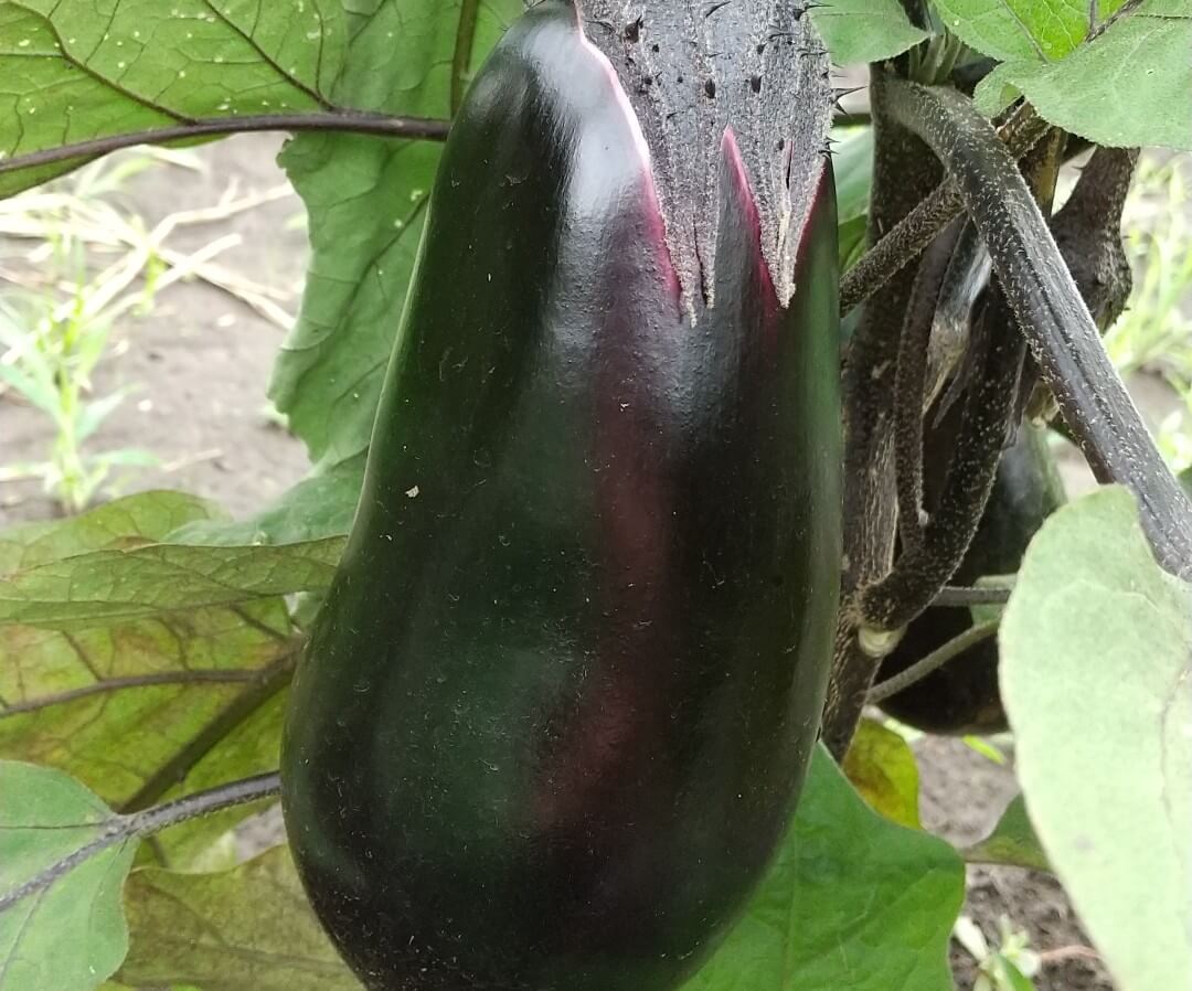 最近ではとても大きなナスを収穫しました。長さは子ども達の顔と同じぐらいの物です。収穫したナスを見て、お母さんもびっくりしていました。