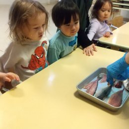 「じゃがいも出てこないよ」と言っていた子も、少しずつジャガイモの姿が見えてくると、「でてきたあと少し」とはりきり、一生懸命掘っていました。出てきたジャガイモを見て「わぁ大きい」「びっくりした」と喜んでいる姿が見られました。