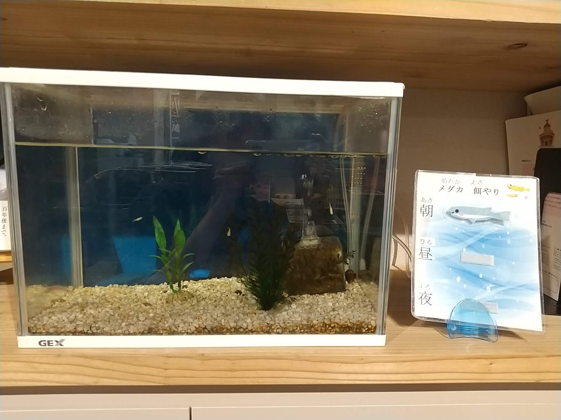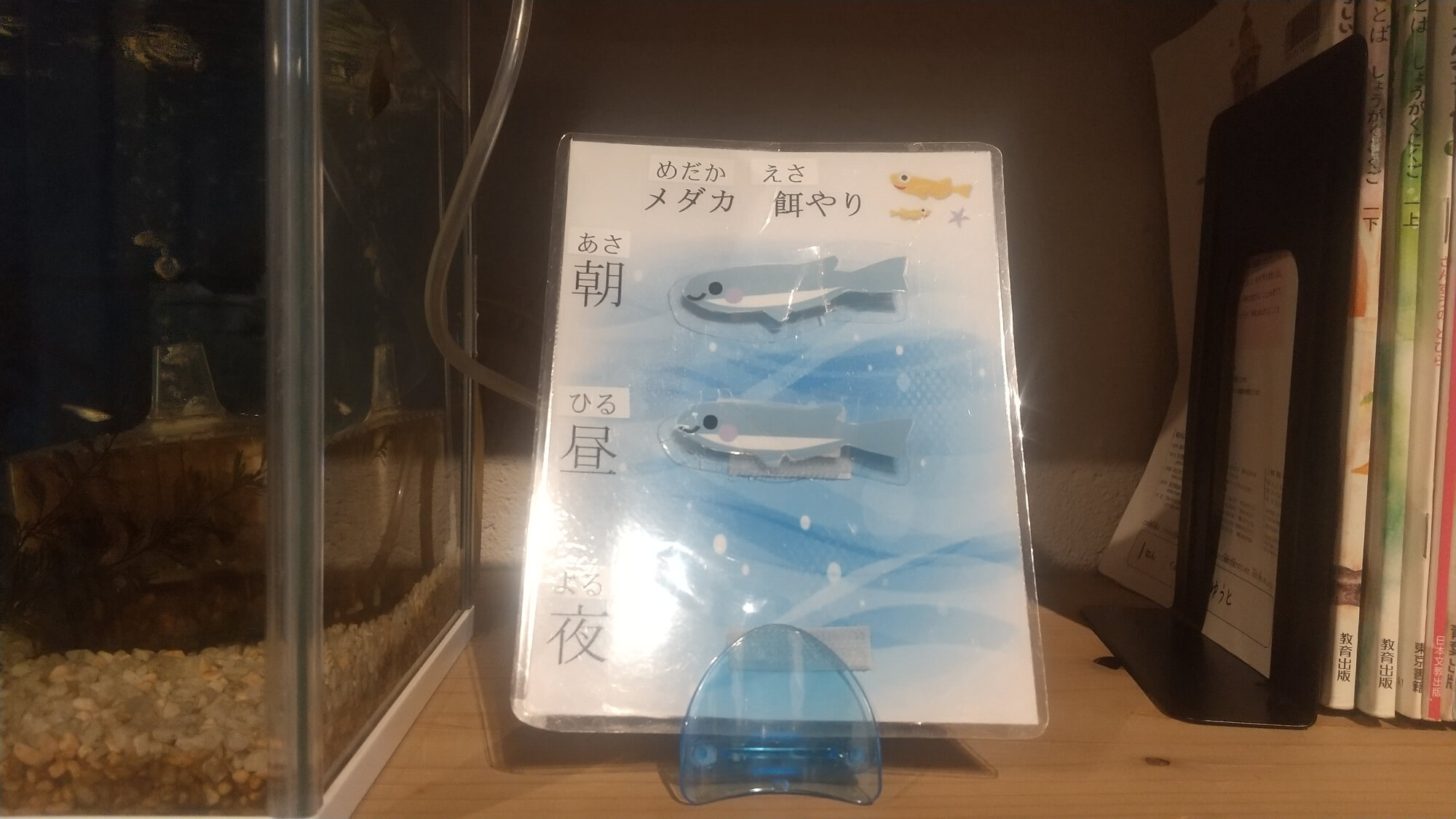 メダカの餌やりボードを設置し、来所した子どもたちはこのボードを見て「ごはん食べてないよ」と気にかけてくれます。