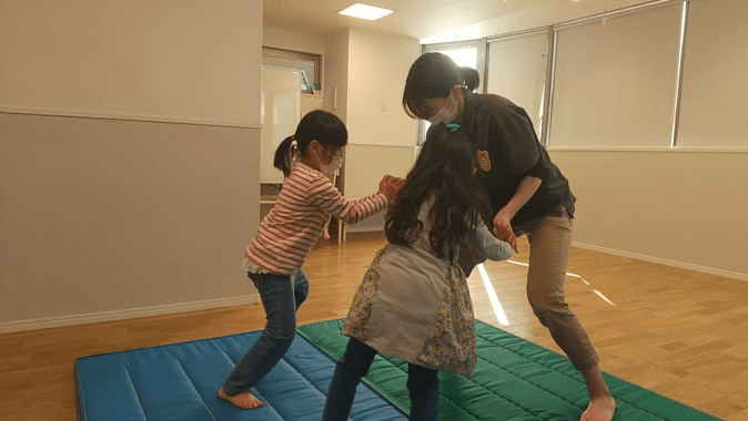 体のイメージをつかむことにより、体のイメージを高めることができます。体のイメージを高めることができると、「見たこと」を覚えてスムーズに体を動かせるようになり、自身の身体を上手に使うことができます。親子で行うと触れ合い活動にもなります。