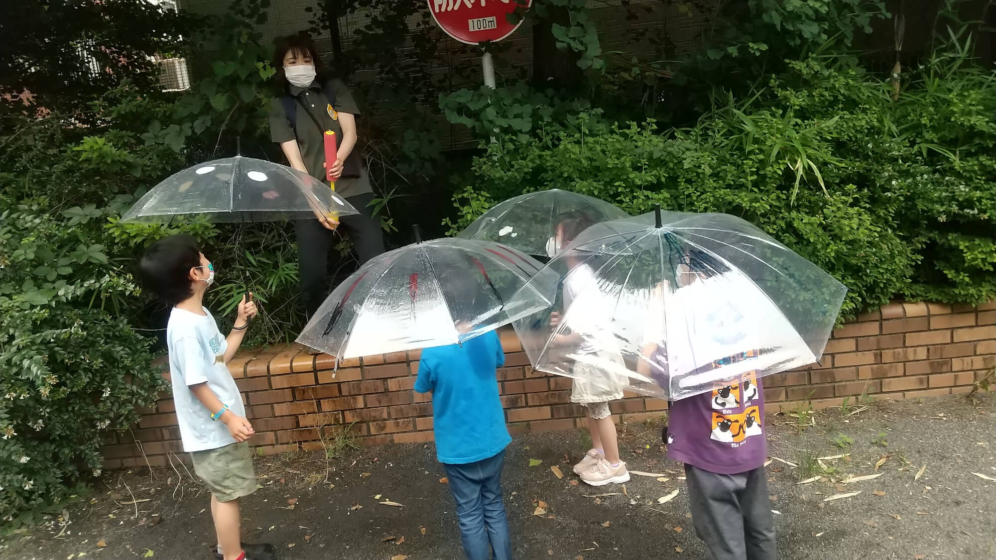 「傘ってどうやって持つといいのかな?」まわりの人にぶつかならいように考えながら歩きました。