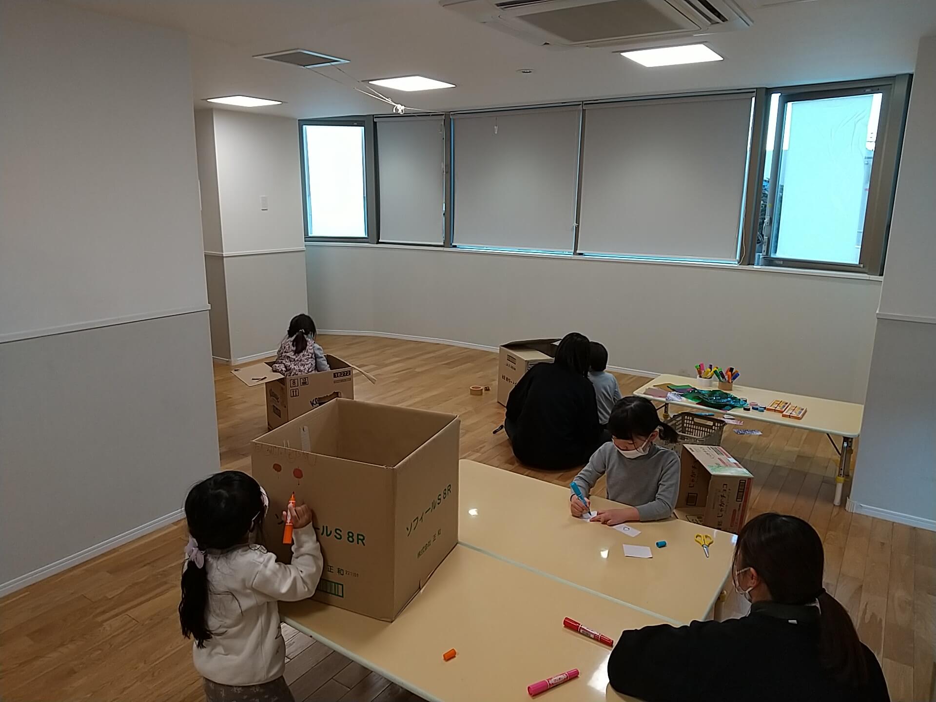 隣の薬局に行き、「段ボールをください」とみんなでお願いを伝えると、快く段ボールを出してくださりいただくことが出来ました。各々好きな段ボールを選びます。