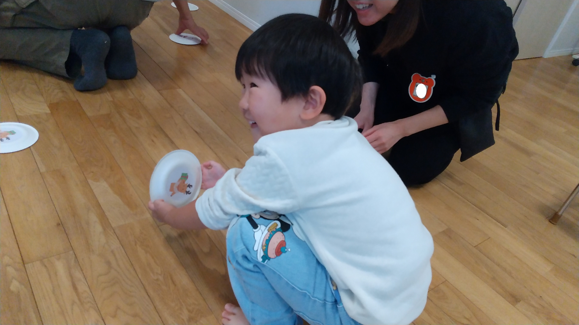 つむぎ調布ルームでも、「サンタとトナカイ」ではなく「うさぎとカメ」版の同じルールで活動を行ったことがある子どもたちがいたので、すぐにルールを理解できてひっくり返し始める子どもや、まずはひっくり返す行動を楽しみながら少しずつ自分がどちらの面にひっくり返せばよいのかを理解していく子どももいました。