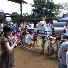 園でペットボトルに水を汲み、畑までリュックに入れていきます。苦労して持参した水を苗にあげ、「大事に育てる」事から生命の尊さや「いただきます」という言葉の意味につながるよう経験を大事にしています。水やりをした後は、水路を探検し、生き物を探しています。少しずつ育っていく野菜の成長が楽しみです。