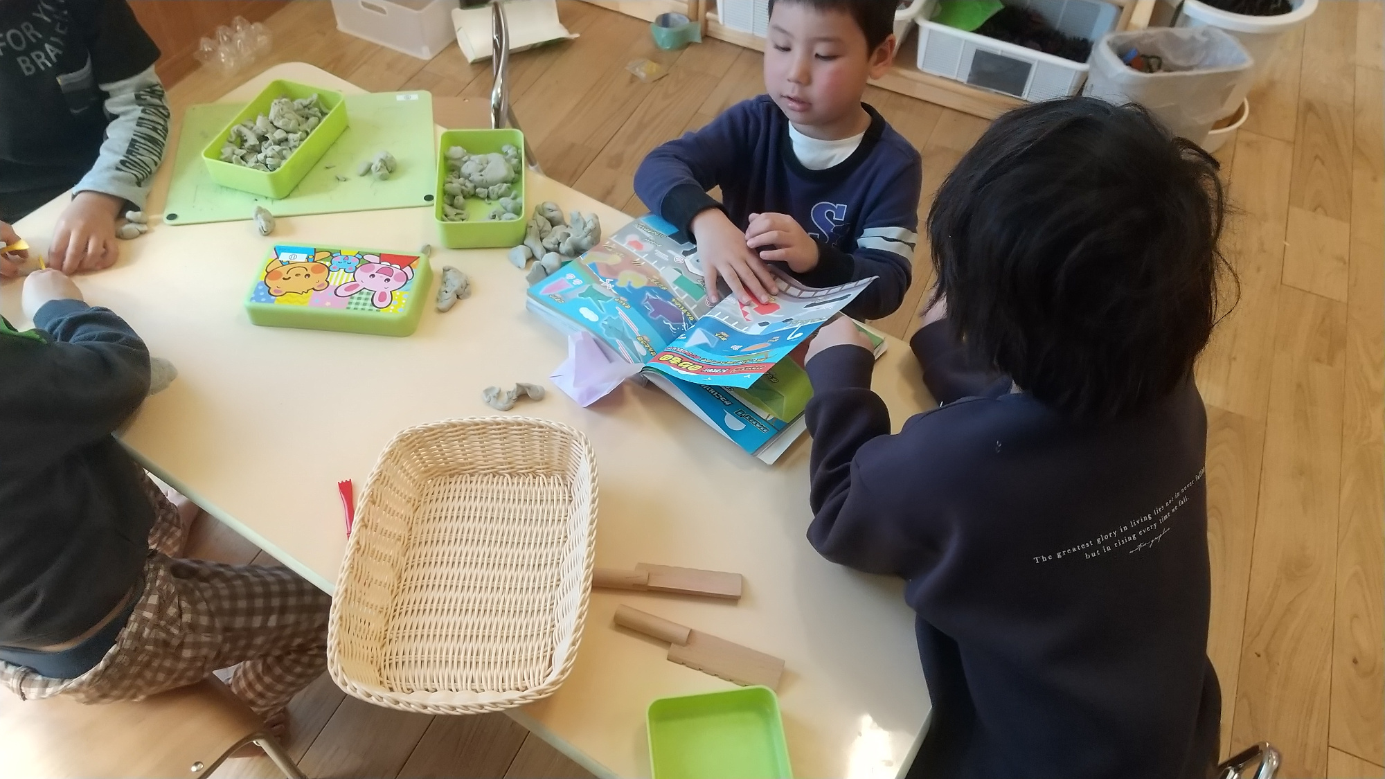 その中で製作や、机上での表現活動を行っています。遊びながら楽しく道具を操作することで、指先の成長につながります。