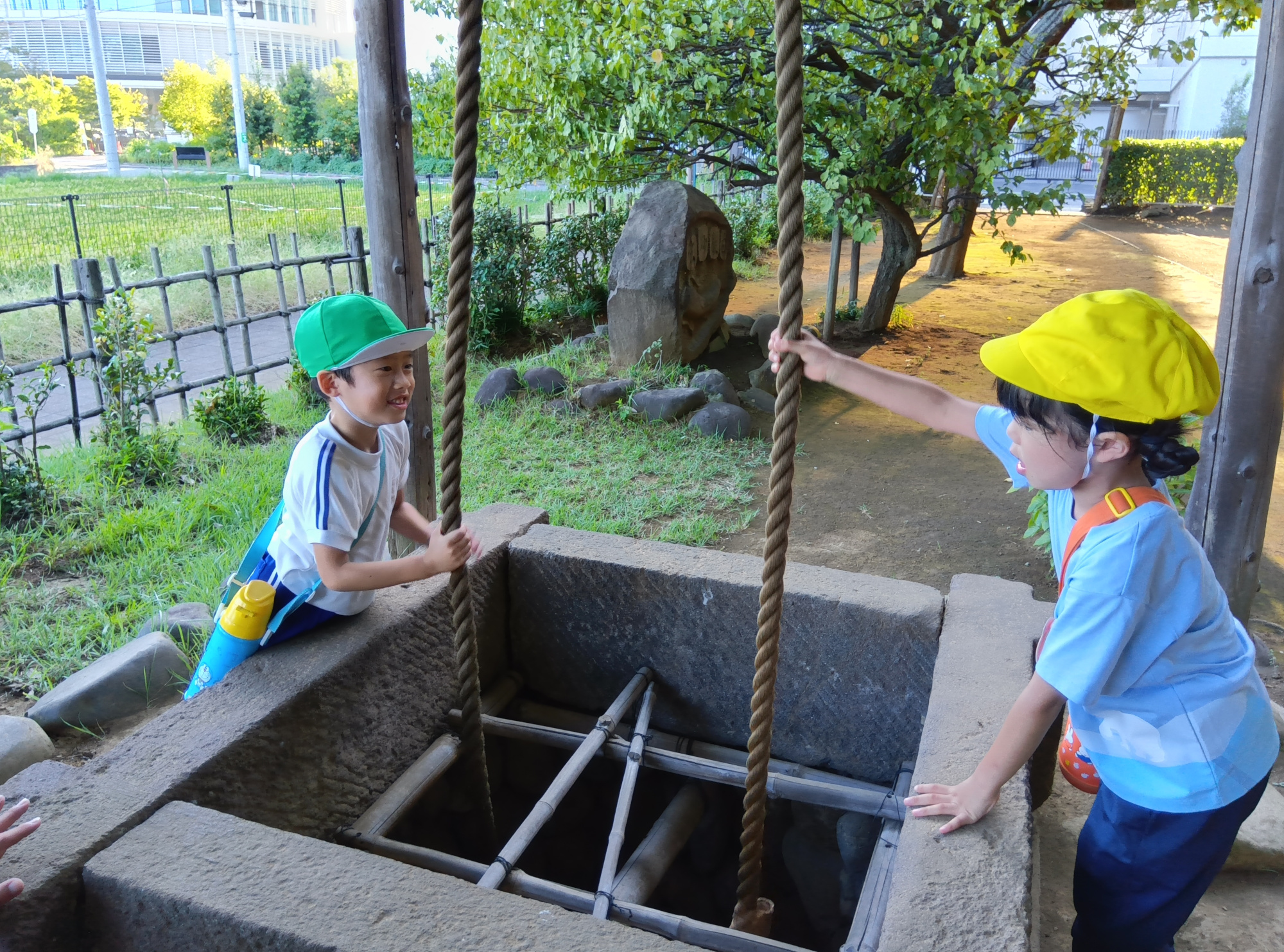 城山公園では、Ⅽくんが井戸を見つけ遊んでいます。