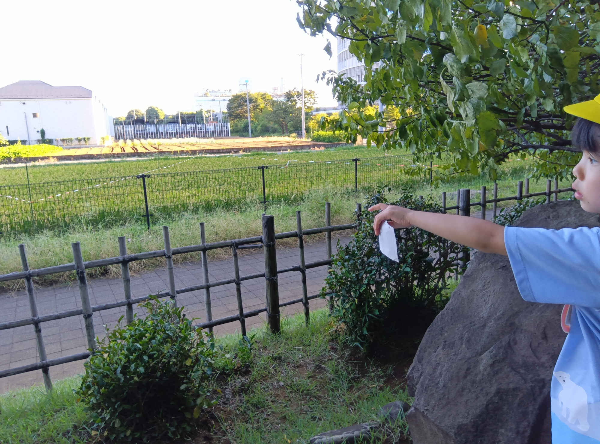 先日は畑から、約40分間かけて 国立市にある城山公園へ向かいました。 この日は4名の異年齢グループでの活動でした。