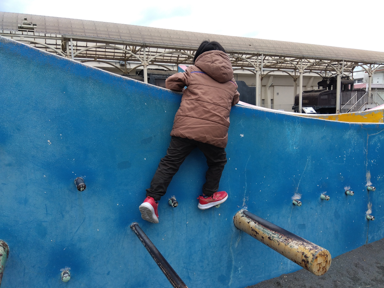 遊具にのぼる子ども