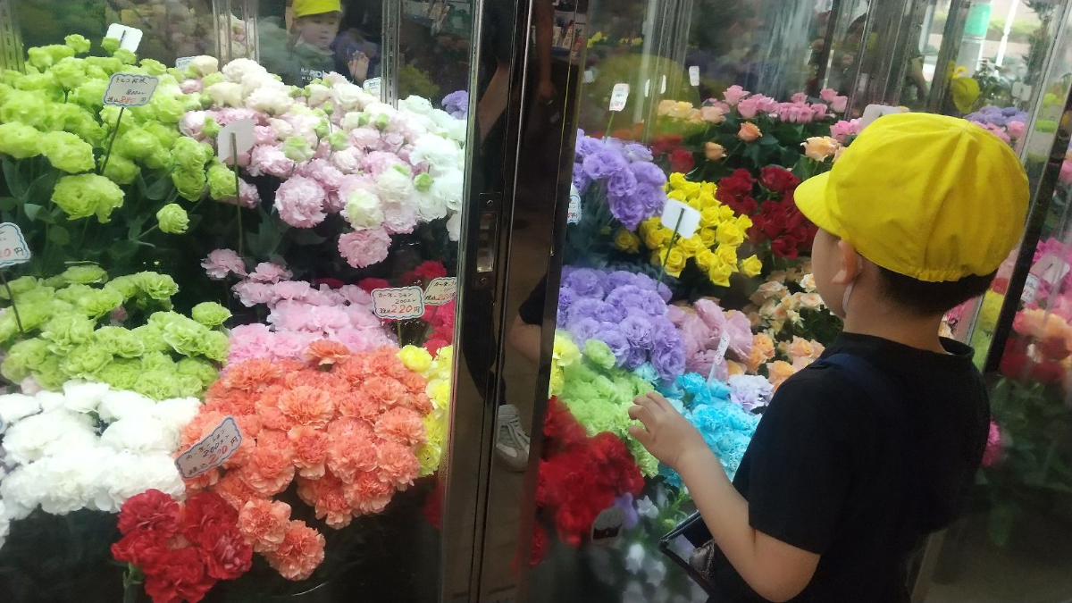 花屋に到着するまでに、どの花を買おうか、わくわくしながら悩んでいた子どもたち。「ママにあげる!」「パパとママと弟、みんなにあげる!」「ママが好きなピンクの花にする!」「ぼくが好きな黄色にするよ!」と考えている時間もとても楽しそうでした。