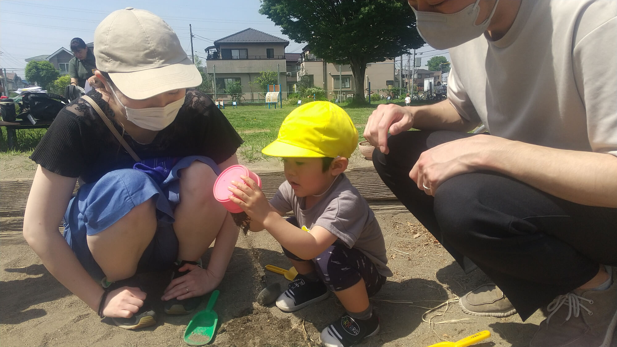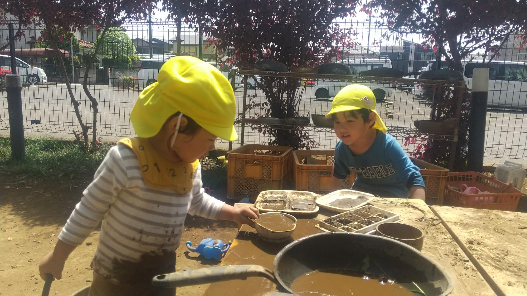 戸外遊びでは友だちのやっていることがモデルとなり遊びが広がることに繋がったり、一緒にやってみたいと思うことで、子ども同士の関わりが生まれ、言葉でのやりとりする経験にも繋がっていきます。