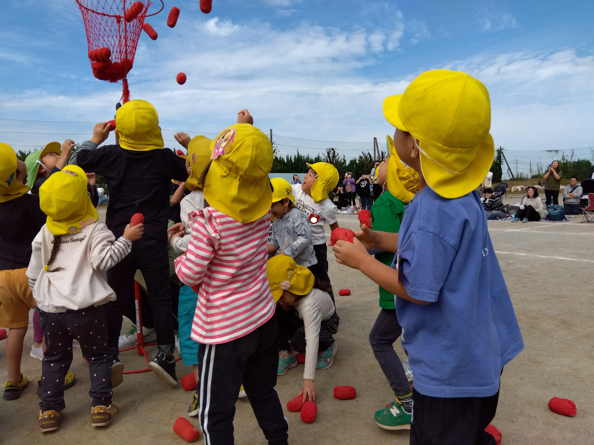 玉入れ競技では、みんなと一緒に参加し、みんなで行う活動を楽しむことができた様子が見られました。