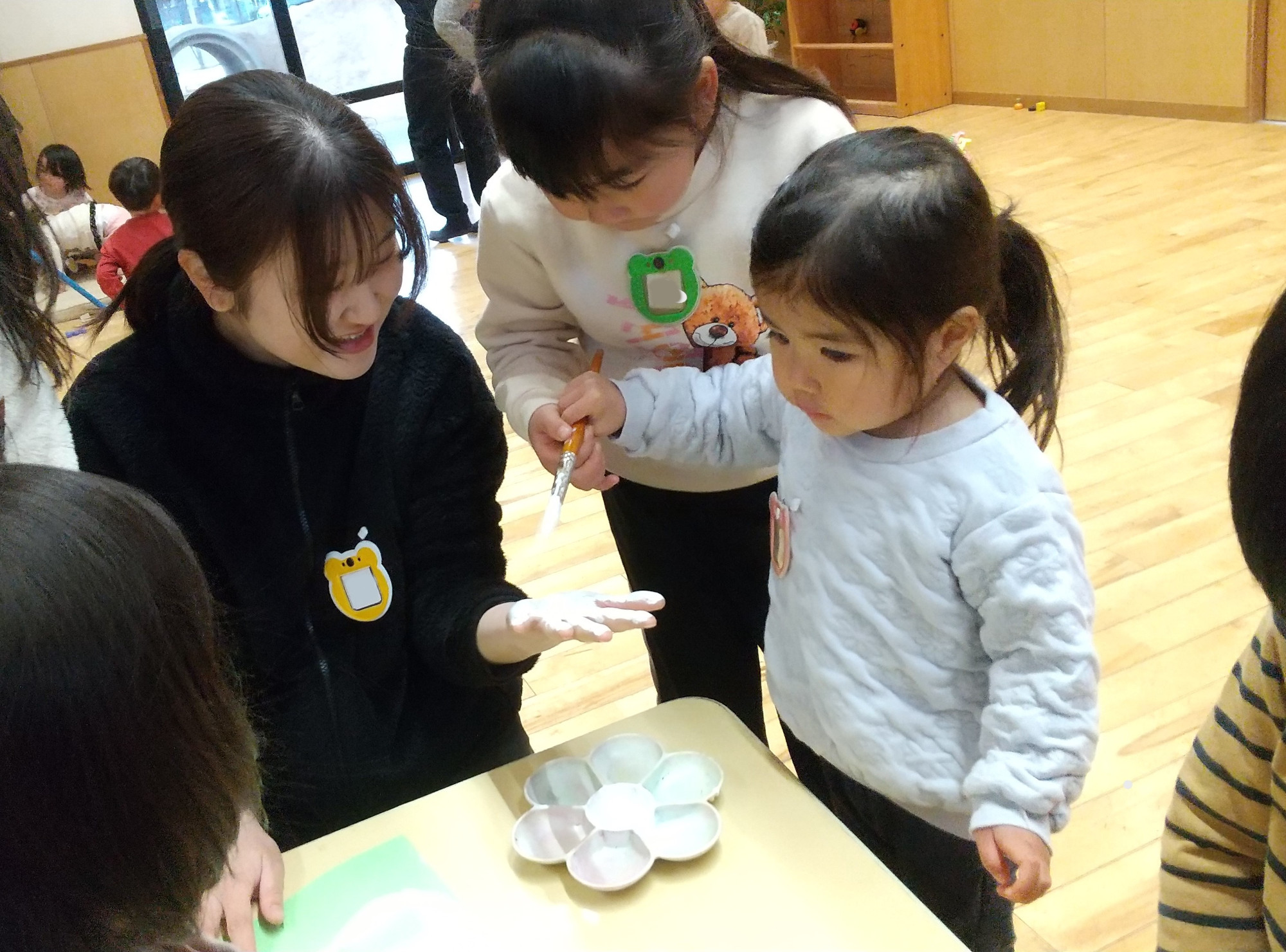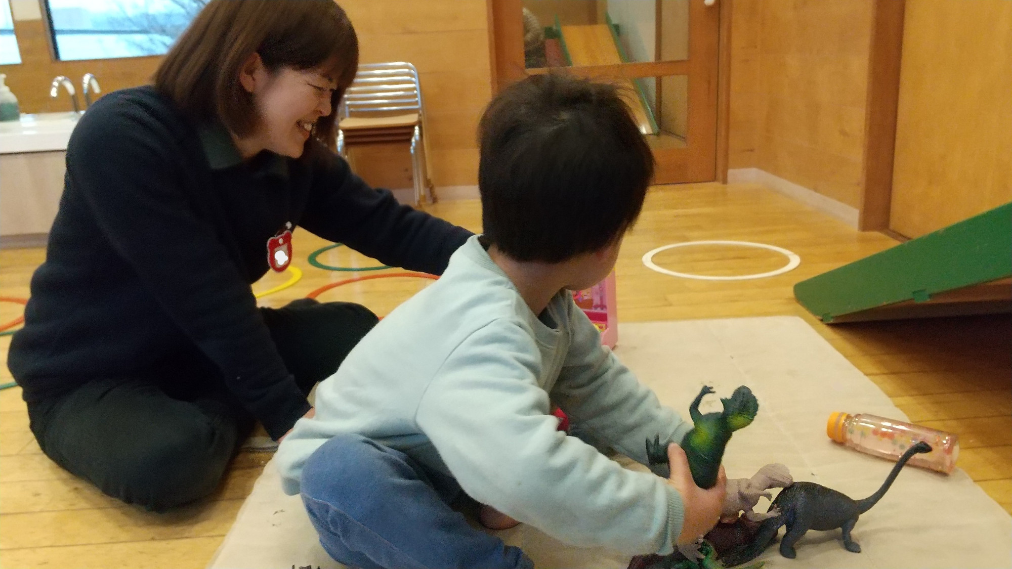 見る参加や間接的な参加など、その子なりの参加の仕方を尊重することで安心して取り組む事ができます。興味の幅が広がることで、友達と関わる機会が増え言葉の獲得や道具の操作を知るなど様々な学びに繋がっていきます。