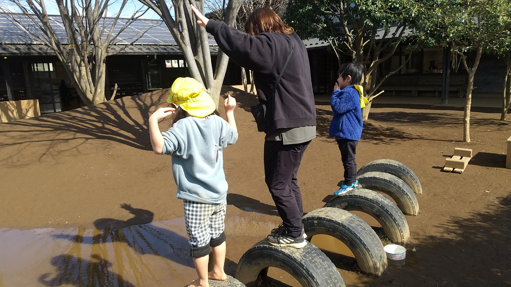 発達支援つむぎ ふじみ野ルームのマンスリー利用の子どもたちは、併設するふじみ野どろんこ保育園のスタッフや子どもたち、ヤギや鶏などの生き物とも一緒に混ざり合って過ごしています。