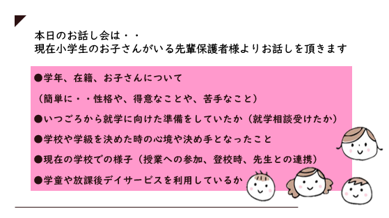 発達支援つむぎ ふじみ野「就学に向けて 先輩保護者を招いてのお話し会」