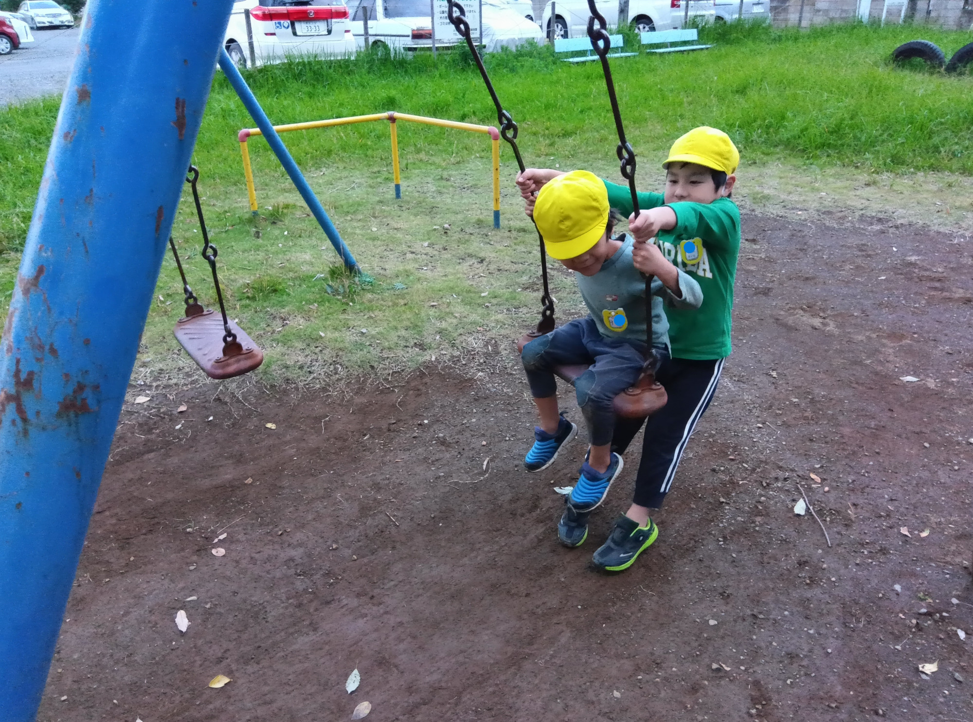 公園につくとみんなワクワクした表情で、何して遊ぼう、誰と遊ぼうと好奇心を持って自分から動き出し、遊具で遊んだり鬼ごっこをしたり生き生きと遊ぶ姿があります。開放的な戸外では、遊具を使う順番などで譲り合いが生じる場面でも、言葉で伝え合いながら気持ちに折り合いをつけることも少しスムーズにできていると感じます。遊びの中で自己決定する力や積極性が育まれることにつながり、また様々なことに挑戦する気持ちも高まるなど公園遊びには魅力がいっぱいです。