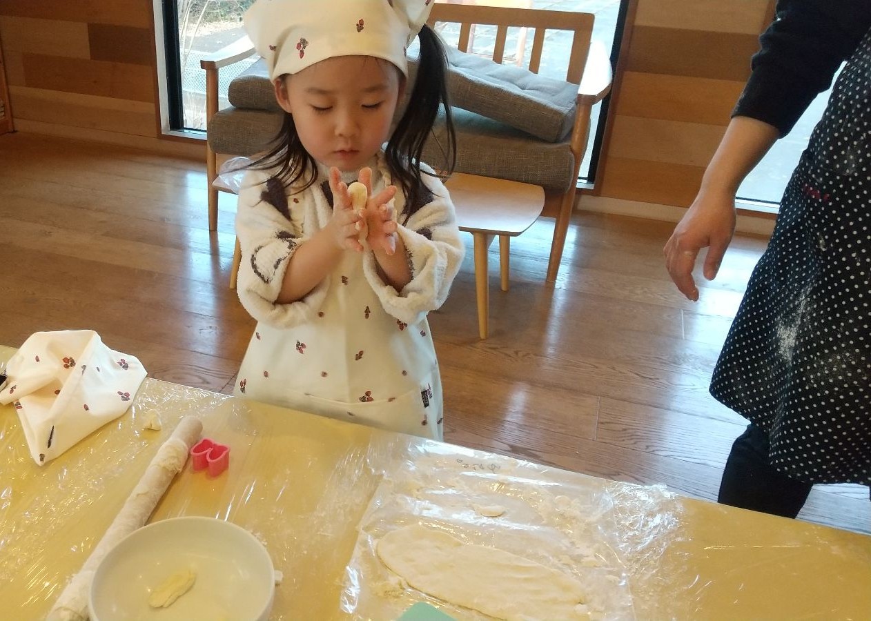 また、うどん作りに限らず、継続的に取り組むことで、初めてのことにも挑戦する姿、友だちの様子を見て真似してみる姿、最後まで意欲的に参加する姿など、それぞれの成長を感じることができます。更に、作ったものを友だちやご家族と一緒に食べることで、満足感や達成感を感じる経験にも繋がっています。