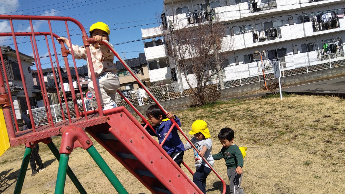 天気のよい日には、散歩へ出る機会を多く設けていますが、散歩に行った先で、滑り台をすべる、ブランコに乗る、砂場で穴を掘る、砂山を作るなど、子どもたちは日々自然の風に触れながら様々な遊びを楽しく過ごしています。