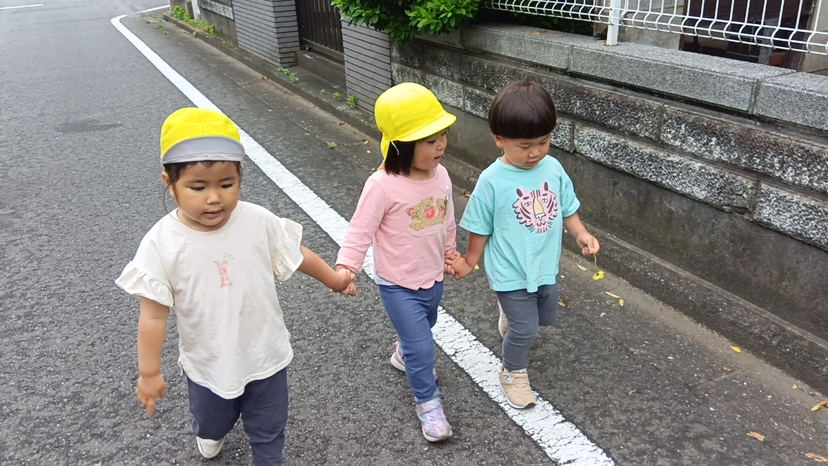 発達支援つむぎ ふじみ野ルームでは併設している保育園スタッフや友だちと手をつないで散歩へ出かけています。