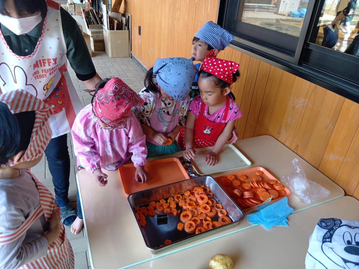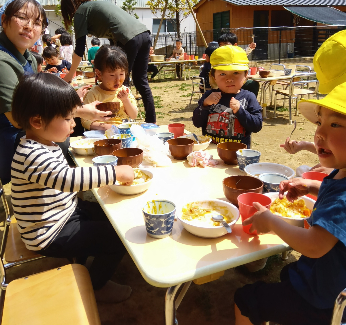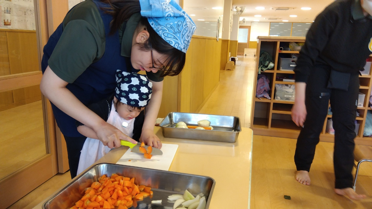 今回の食育活動を通して、実際に食材に触れ、包丁の使い方や型抜きの仕方を学び、自分たちで作ったご飯の美味しさを五感で感じられた機会となりました。今後も、毎月の食育活動を通して、子どもたちの学びや育ちを深めていきたいと思います。