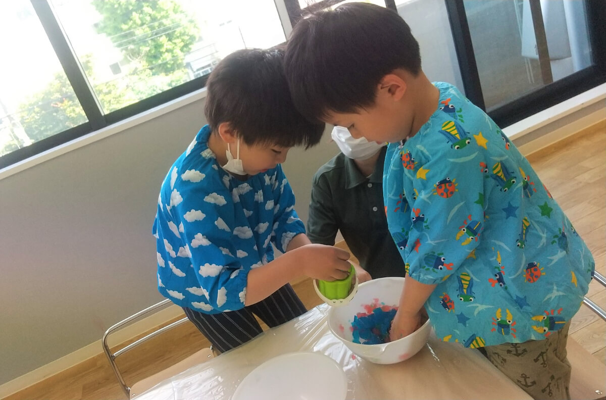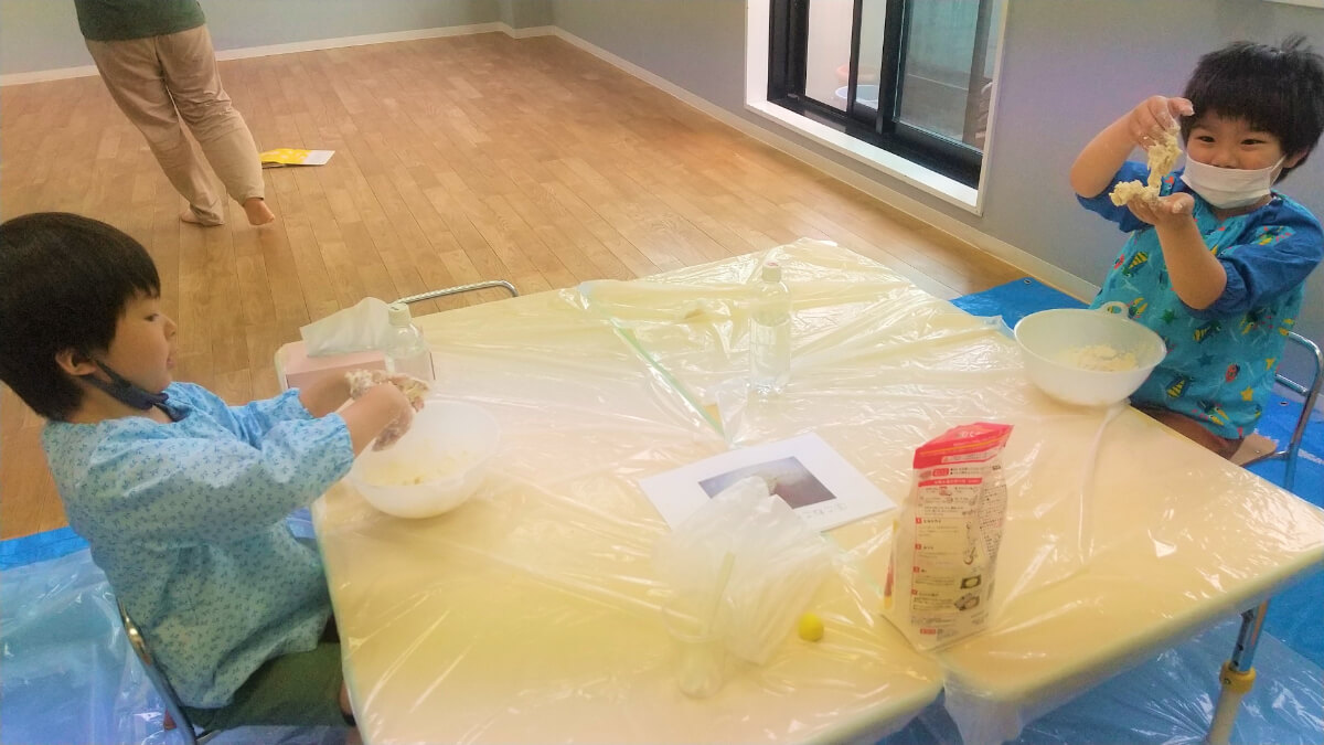 発達支援つむぎ 池尻「感触遊びってこんなに楽しい~小麦粉粘土や寒天遊び~」
