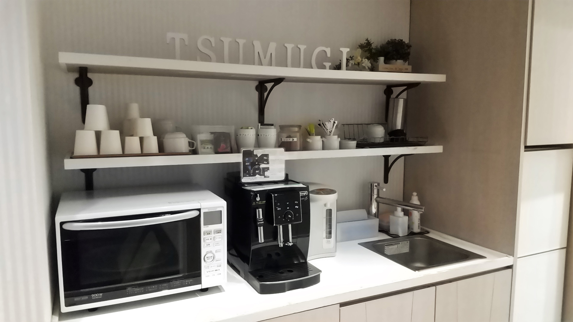つむぎ池尻ルームでは、セルフサービスで無料のコーヒーやお茶も楽しんでいただける「つむぎカフェ」をご用意しております。