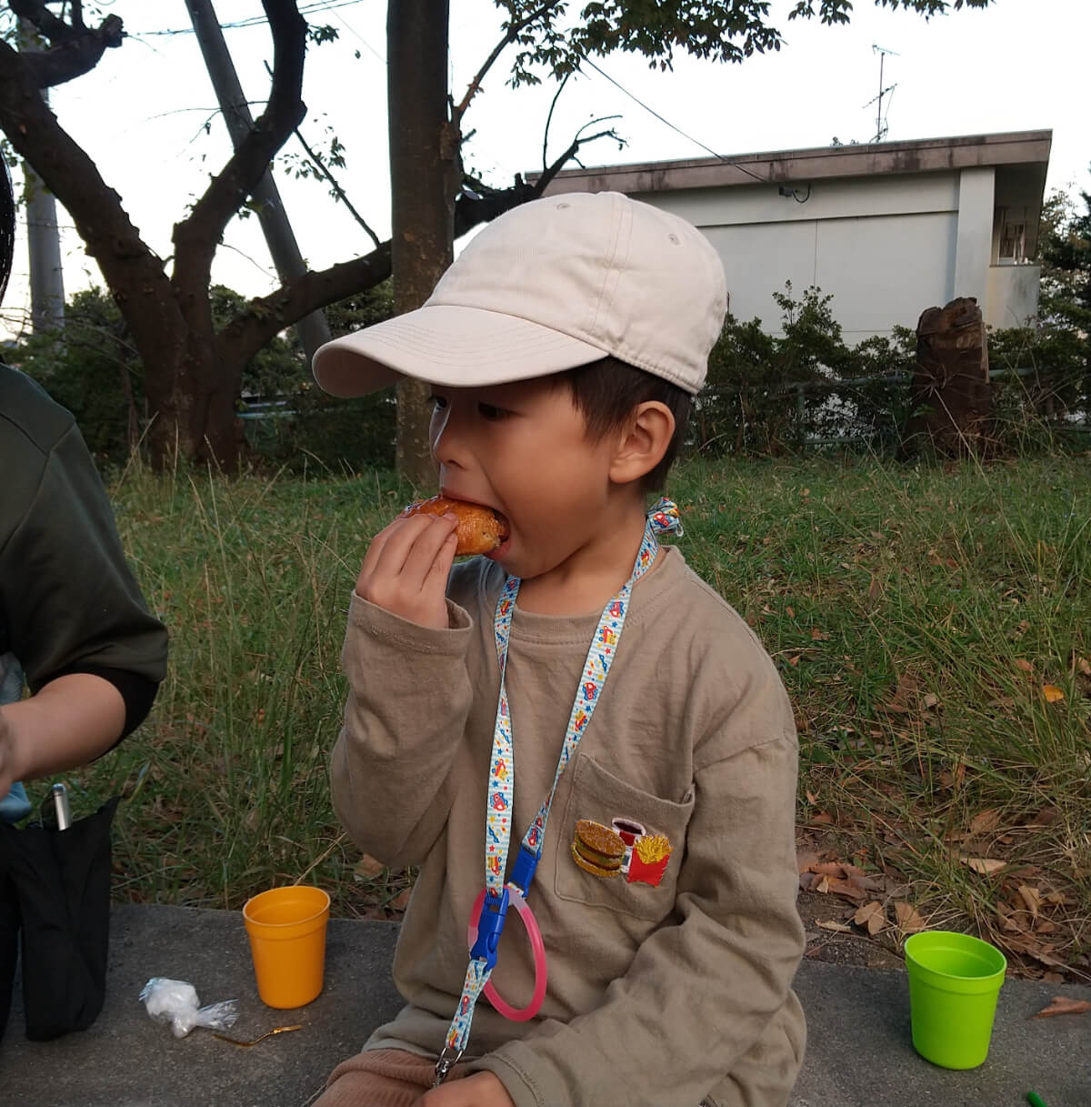 思っていたよりも硬く、食べるのが難しかった様子です。後で、お迎えに来たお母さんに選んだパンの話をしました。