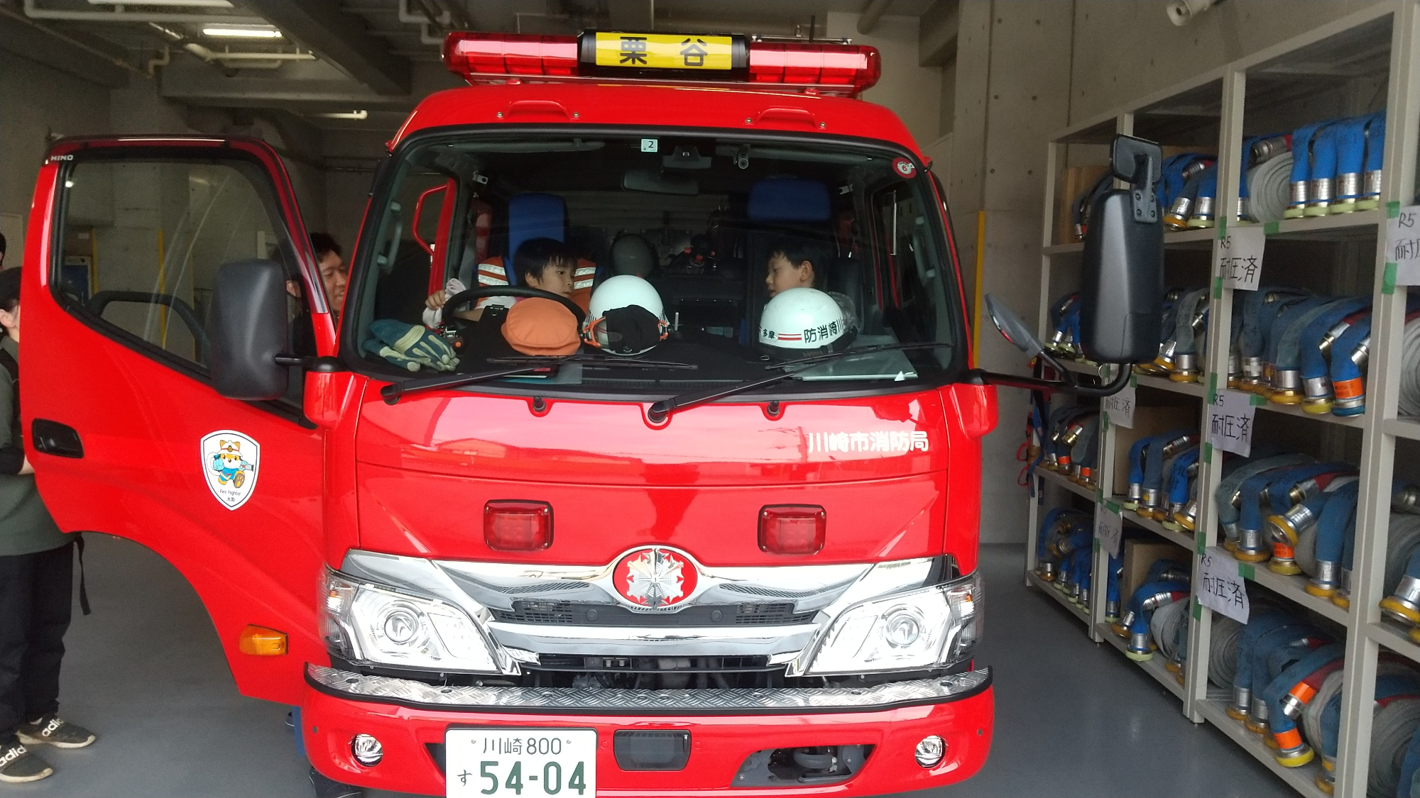 到着すると、初めての場所や人にドキドキしながらも、消防車や救急車に興味津々です。