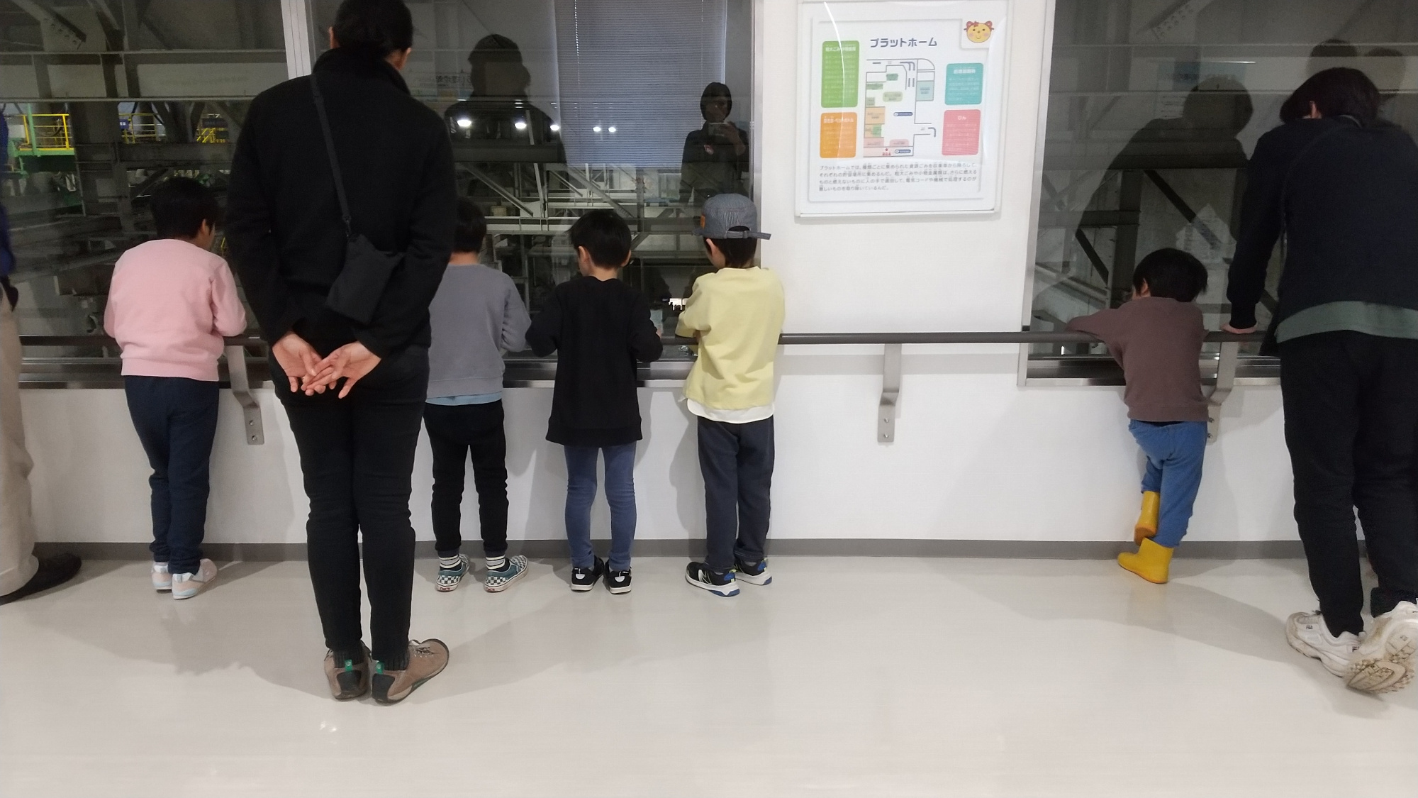 「わあ、すごい大きい」「(ごみクレーンに対して)なにあれ、ごみをつかんでる!」「夜はうごくの?」「なんの数字?ひかり?」