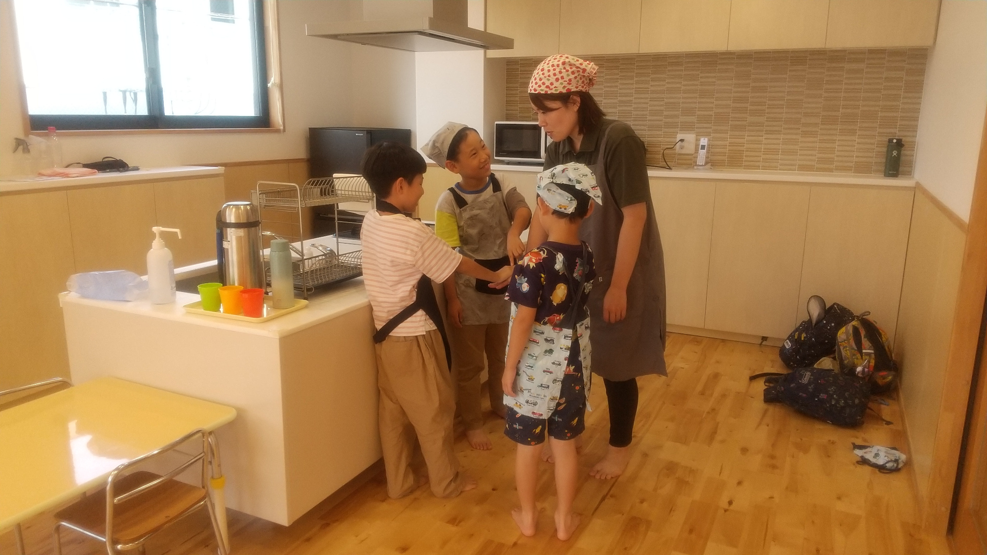 つむぎ 生田ルームでは小学校が夏休みに入り、放課後等デイサービスを利用している子どもたちの長期支援が開始となりました。普段は、学校が終わってからの短い時間の支援になりますが長期支援中は朝から1日の大半をつむぎ 生田ルームで過ごします。そのため、お昼ご飯をどうするかというと、子どもたち自身で調理します。