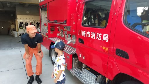 多摩消防署栗谷出張所への訪問は今年で3回目となります。緊張しているお子様も消防士の皆様が笑顔で迎え入れて下さったので、楽しく消防署見学に参加することができていました。